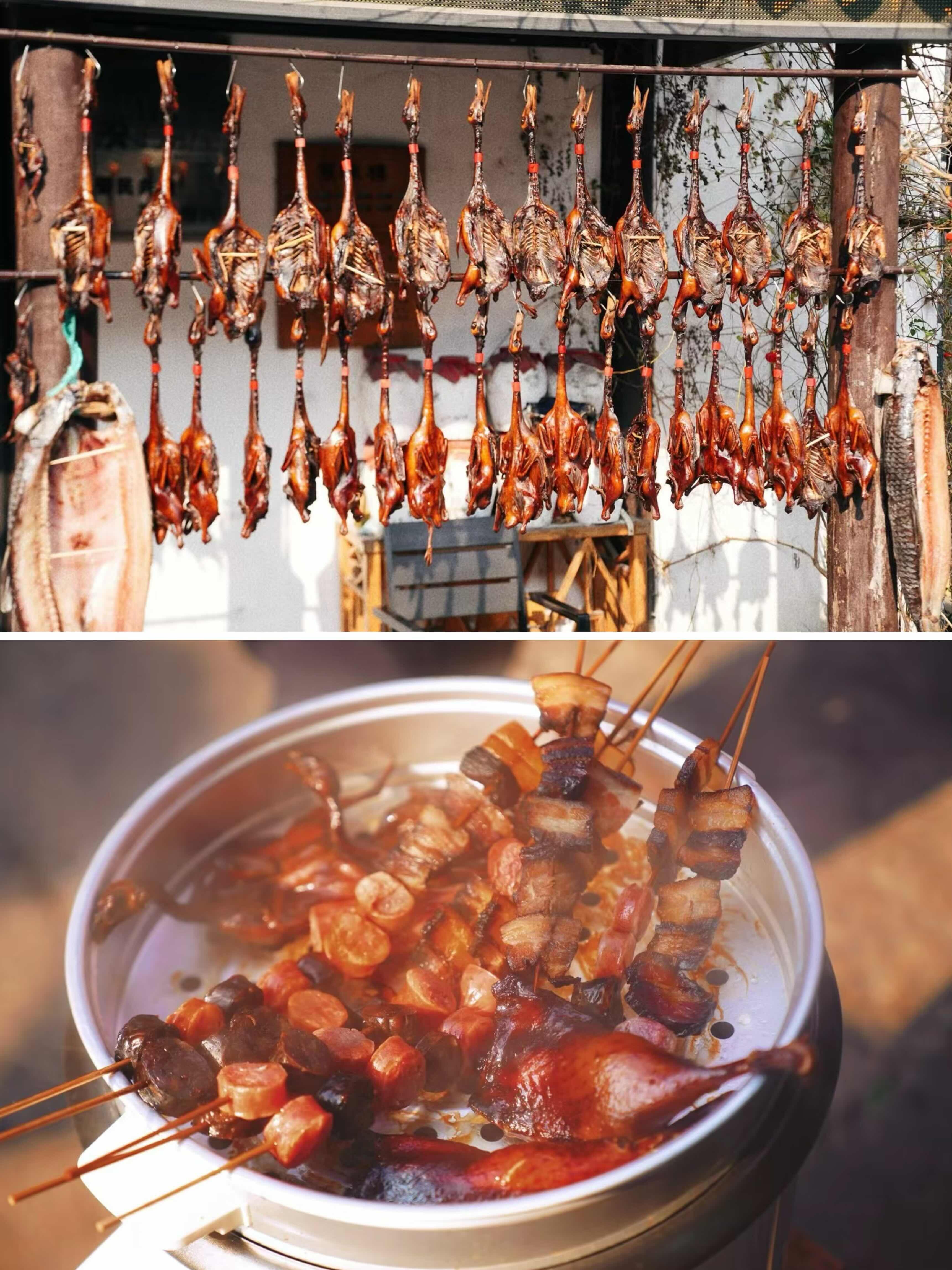 安昌,是未被喧嚣惊扰的江南旧梦。腊肠、酱鸭悬满廊檐,酱油的醇香在石板路上流淌。乘乌篷船穿行于古桥下,船桨划开水面,两岸老茶馆里飘来评弹声,最后别忘了带一瓶《舌尖》同款仁昌酱园的酱油,让咸鲜封存旅途的记忆。