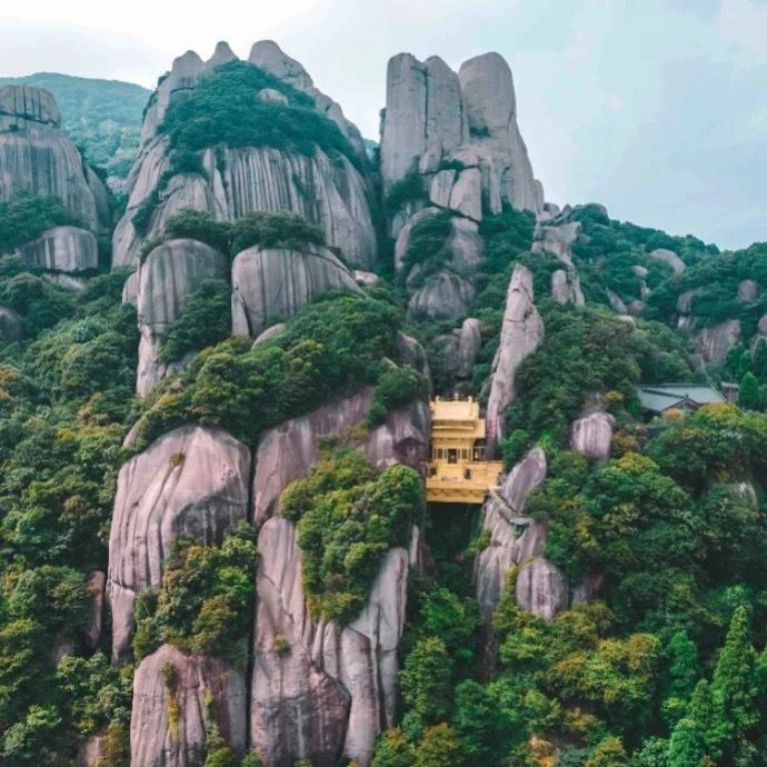 太姥山以**花岗岩峰林地貌**闻名,365处奇石千姿百态,演绎着大自然的想象力。