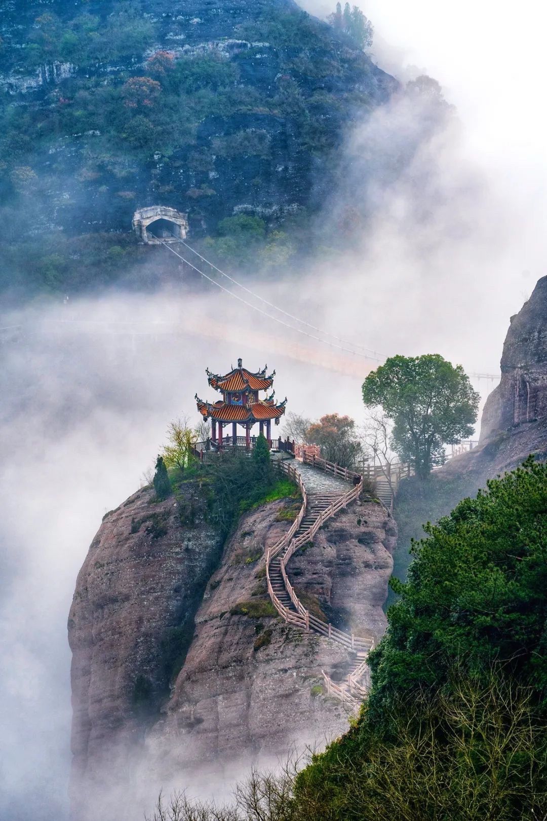 登顶覆鼎峰,脚下是翻涌的云海,远处是东海日出的壮丽。晨光洒向海面,山与海共染金辉,随手一拍即是大片。若逢雨后初晴,云雾从山谷升腾,群峰若隐若现,宛如蓬莱仙岛。