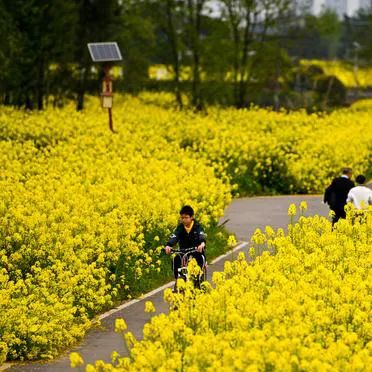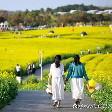 沿着廊道信步前行,一幅如梦似幻的美景便毫无保留地展现在眼前。丘陵起伏间,大片大片的油菜花海肆意绽放,宛如一片金色的海洋。微风轻拂,花浪翻涌,金色的花瓣随风飘舞,空气中弥漫着阵阵甜香,令人沉醉不已。置身于这片花海之中,游人仿佛忘却了尘世的烦恼与喧嚣,沉浸在这纯粹的自然之美中,尽情享受着这份诗意的慢生活。