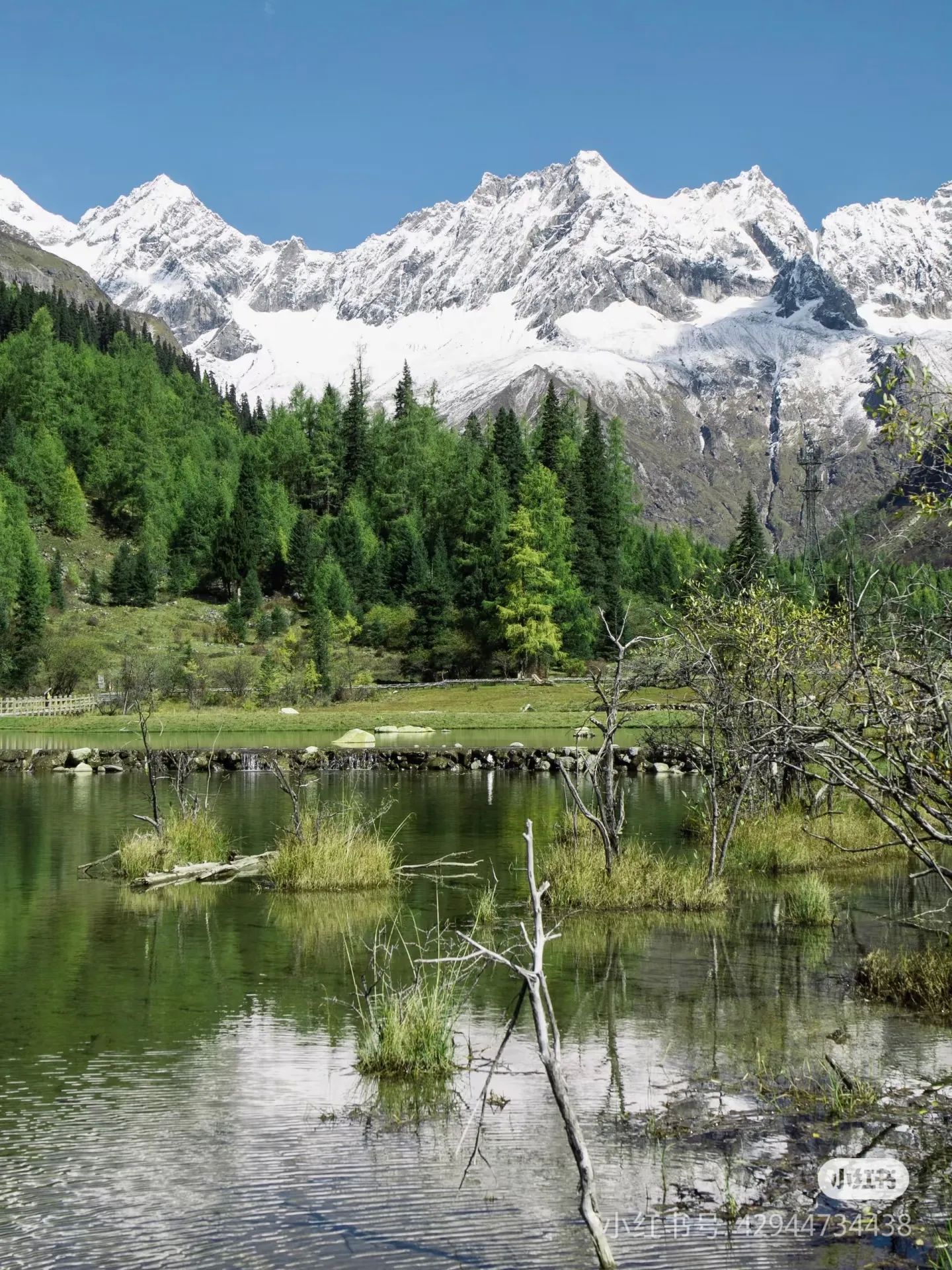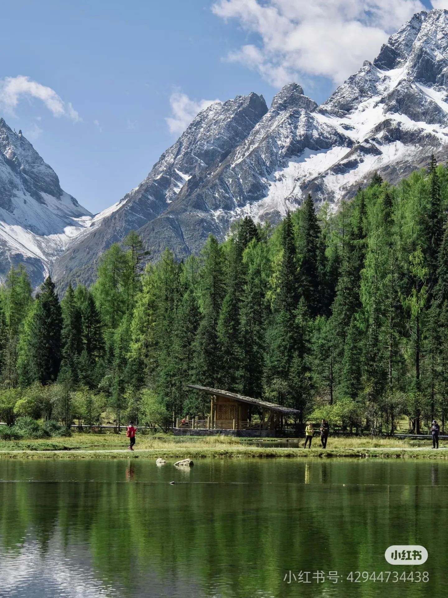 1. 珠噶纳措:这里堪称整个景区最惊艳、最出片的地方!湖水清澈见底,雪山、蓝天、绿树倒映其中,构成了一幅绝美的画卷。不过比较遗憾的是,观光车在这一站不会停车,大家需要坐到布达拉峰站后,再往回走1公里左右。虽然多走了些路,但相信我,一切都是值得的!随手一拍,都是大片既视感。