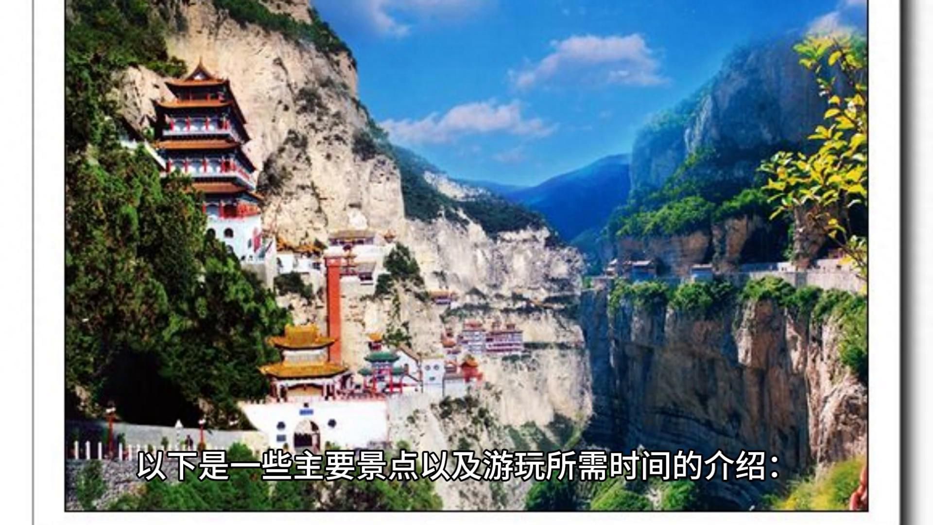 ·介公岭。是为纪念介子推而建,有介子推的雕像和相关的文化展示,是了解历史文化的重要场所,建议游玩时间1-2小时,包括乘坐缆车上下山的时间。