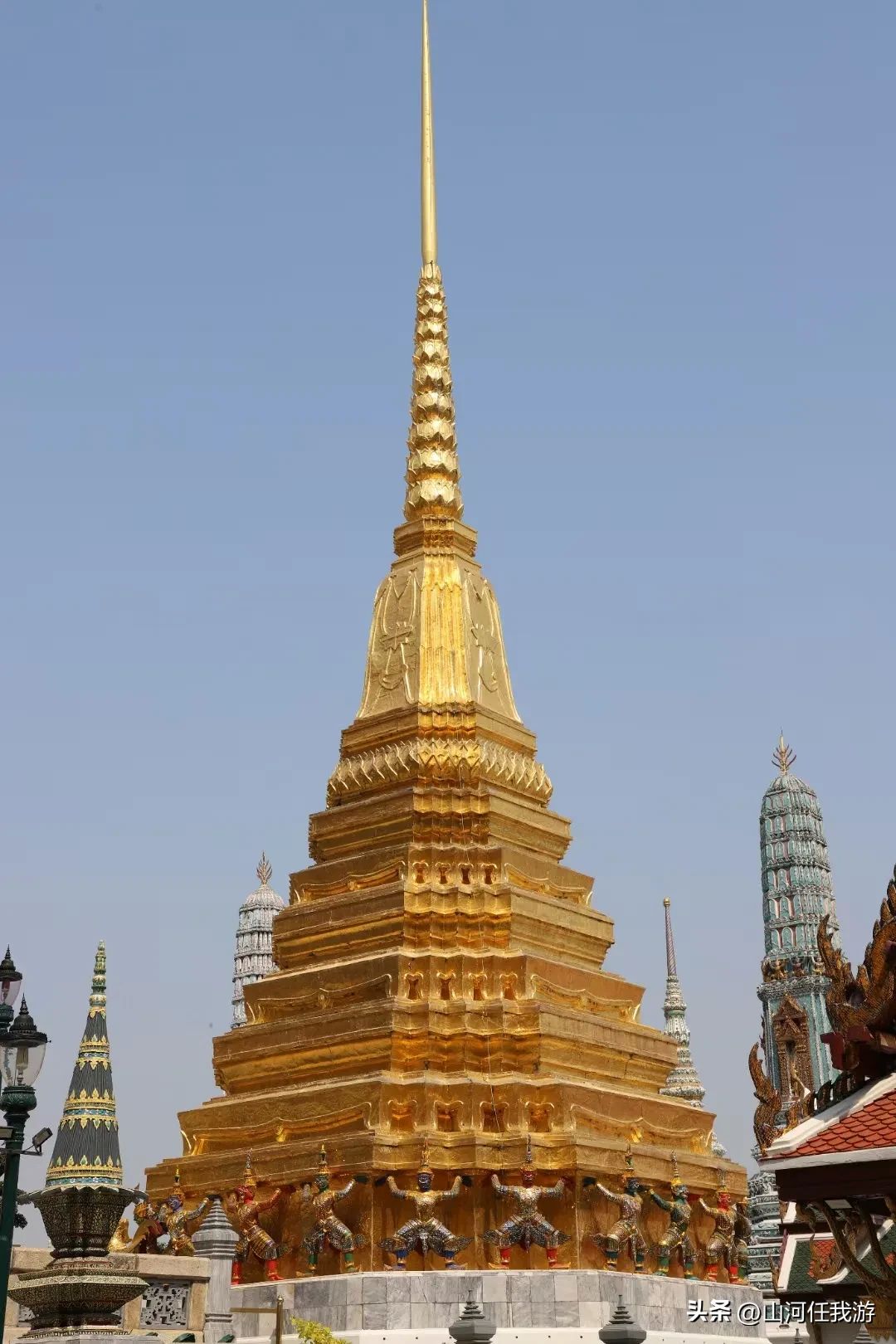 玉佛寺(图5-7)是泰国佛教最神圣的地方,是查库里王朝的守护寺和护国寺,是泰国三大国宝之一,是泰国大王宫的一部分,面积约占大王宫的1/4。玉佛寺是泰国王族供奉玉佛像和举行宗教仪式,进行各种祭礼活动的场所,因寺内供奉着玉佛而得名。
