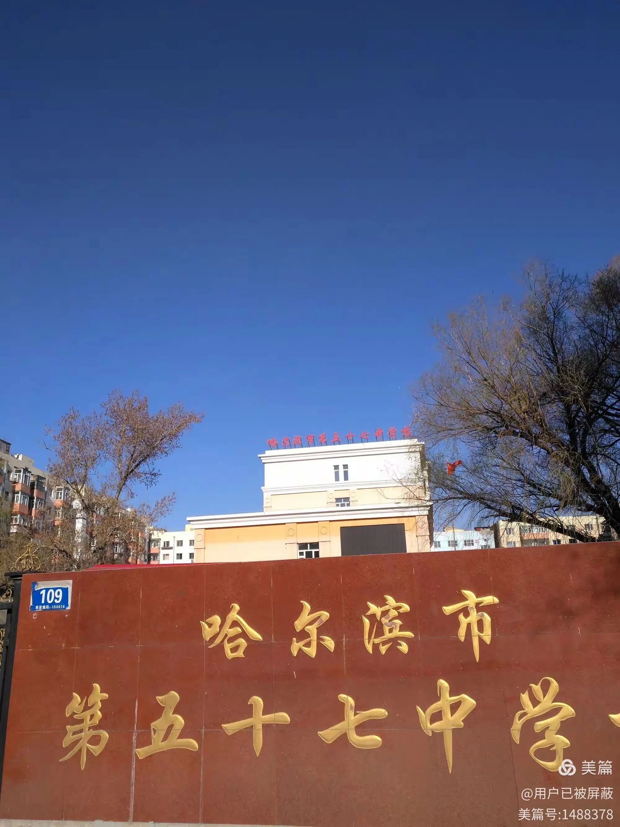 沿着街往北走,几步路就是哈尔滨57中学,门牌号是109号。有点意思,我们是56个民族,他是57中学;我们说108条好汉,他109号,始终多出1来。