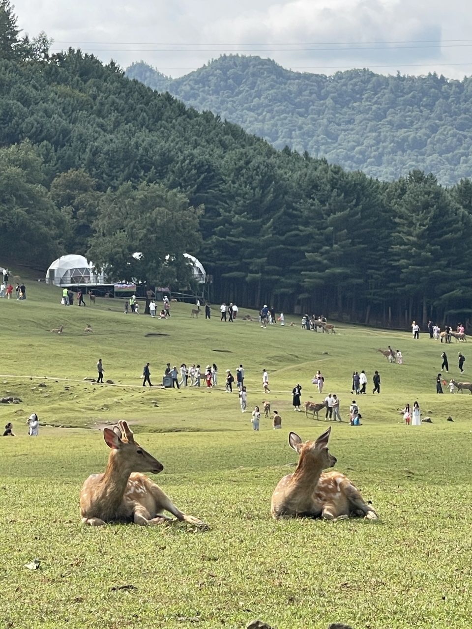 中午:抵达金山鹿苑(门票45元),投喂梅花鹿(自备玉米粒),拍摄森系大片