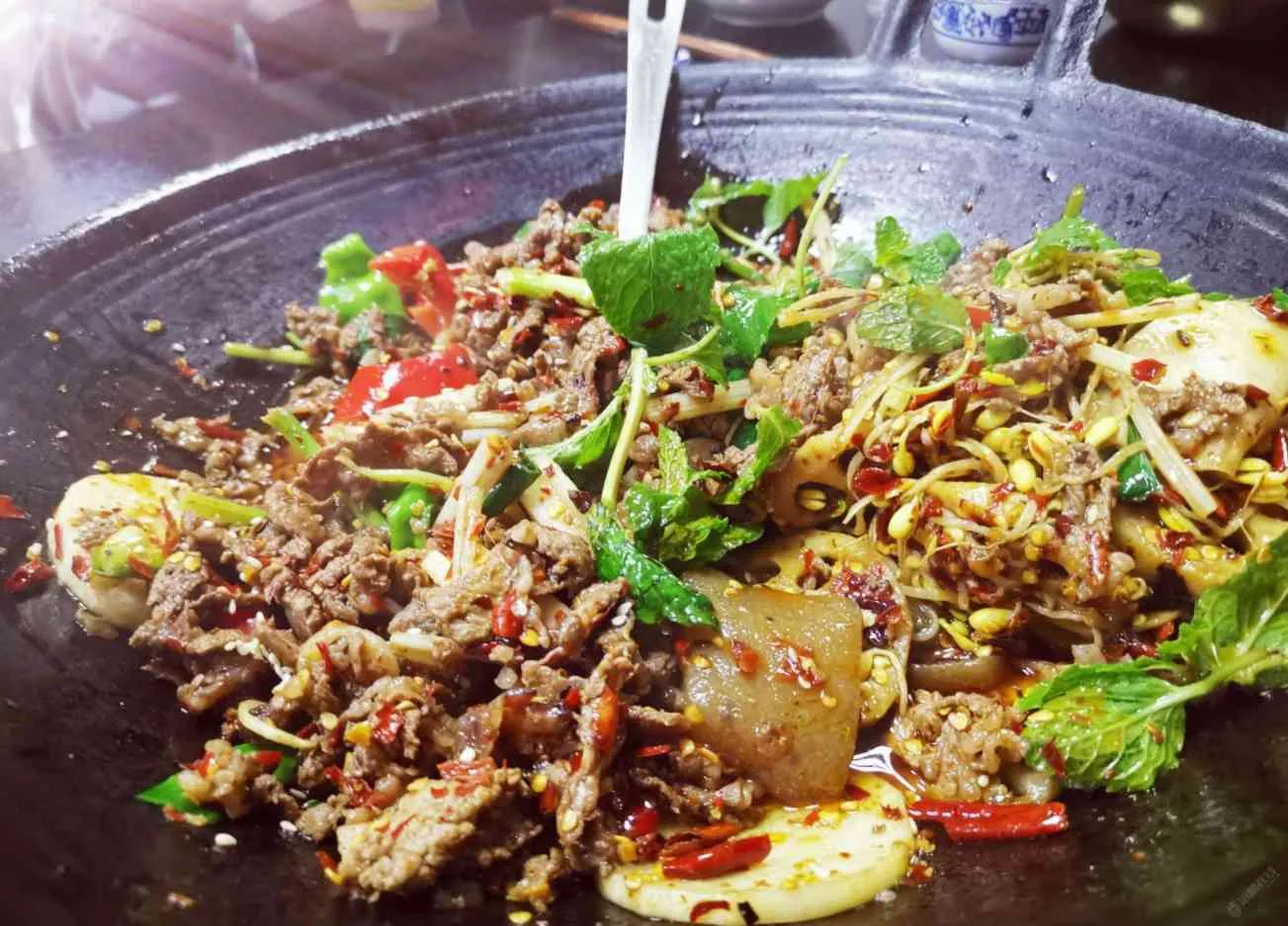 2. 洋芋粑:将洋芋(土豆)蒸熟后压成饼状,再经油炸,外皮金黄酥脆,内里软糯香甜,搭配特制酱料,别有一番风味。