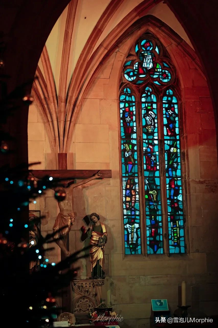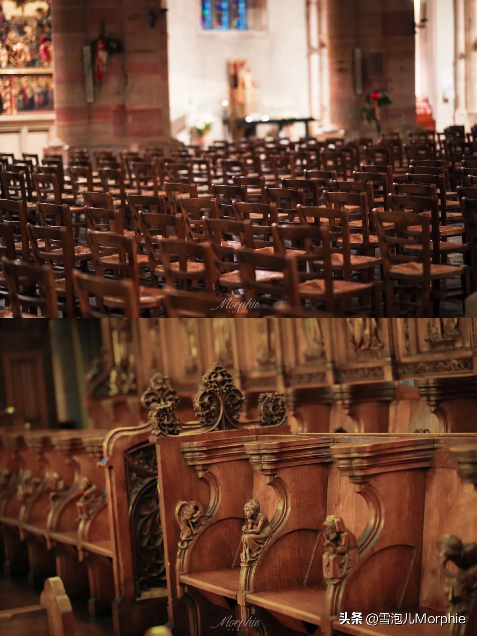在我见过的众多教堂中,圣马丁教堂虽然古朴,但显然不是最令人震撼的那个。然而这座小小的教堂作为小城中央的一颗明珠,却每天接待着来来往往的朝圣者。出乎我意料的是,虽然科尔马是一座旅游城市,但来到圣马丁教堂的还是当地居民居多。圣马丁教堂的内,一条狭窄的通道两边排满了供教徒们祈祷的椅子,继续往前走就是主祭坛。大厅两侧黄中带红的圆柱给我一种朴实的美感但柱顶的装饰不失华丽。据说有人做弥撒时,教堂内的管风琴声非常优美动听。找个椅子坐下,身边虔诚的信徒在喃喃祷告,我的内心此刻也多了一份祥和。