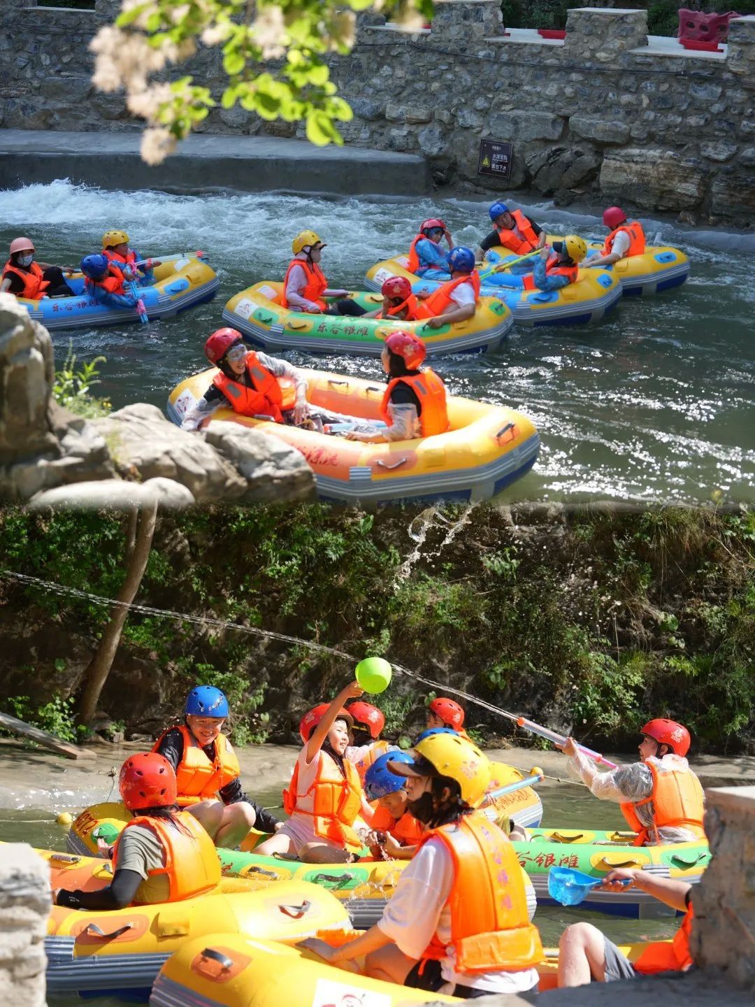 1. 高山峡谷漂流:必玩项目TOP1!全长3.8公里,有着180米垂直落差和300 +极速叠差 ,“华北最野漂流”名不虚传!一路跌宕起伏,时而高速俯冲,时而在平缓水面打水仗,超欢乐。一定要提前准备好防水袋、换洗衣物,不然会秒变“落汤鸡”,水枪水瓢也记得带上,开启打水仗模式