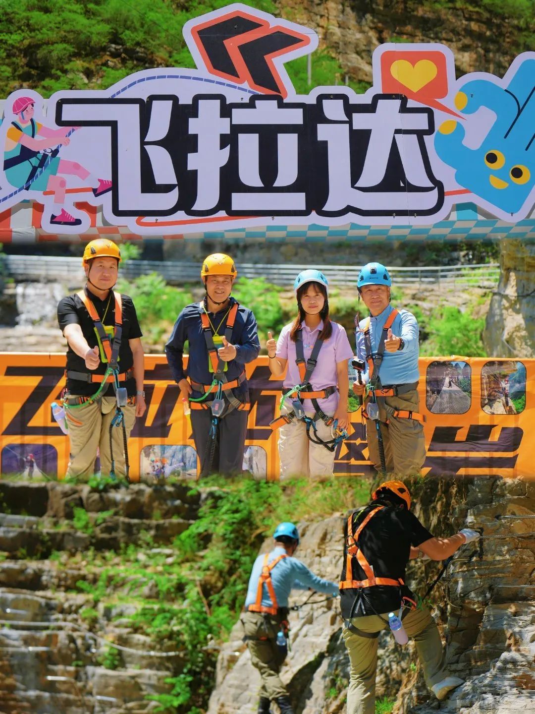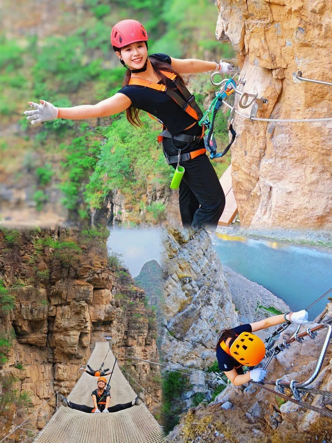 3. 飞拉达:分为常规线路和新手线路。常规线路在景区深处,全程大概2小时,有专业陪同领队,线路长、难度较高,爬到高处俯瞰峡谷,成就感满满;新手线路在景区进门处,长度短、难度低 ,小朋友和不太敢挑战的宝子也能体验。玩的时候记得穿舒适的运动鞋,听从教练指导,正确穿戴安全装备。