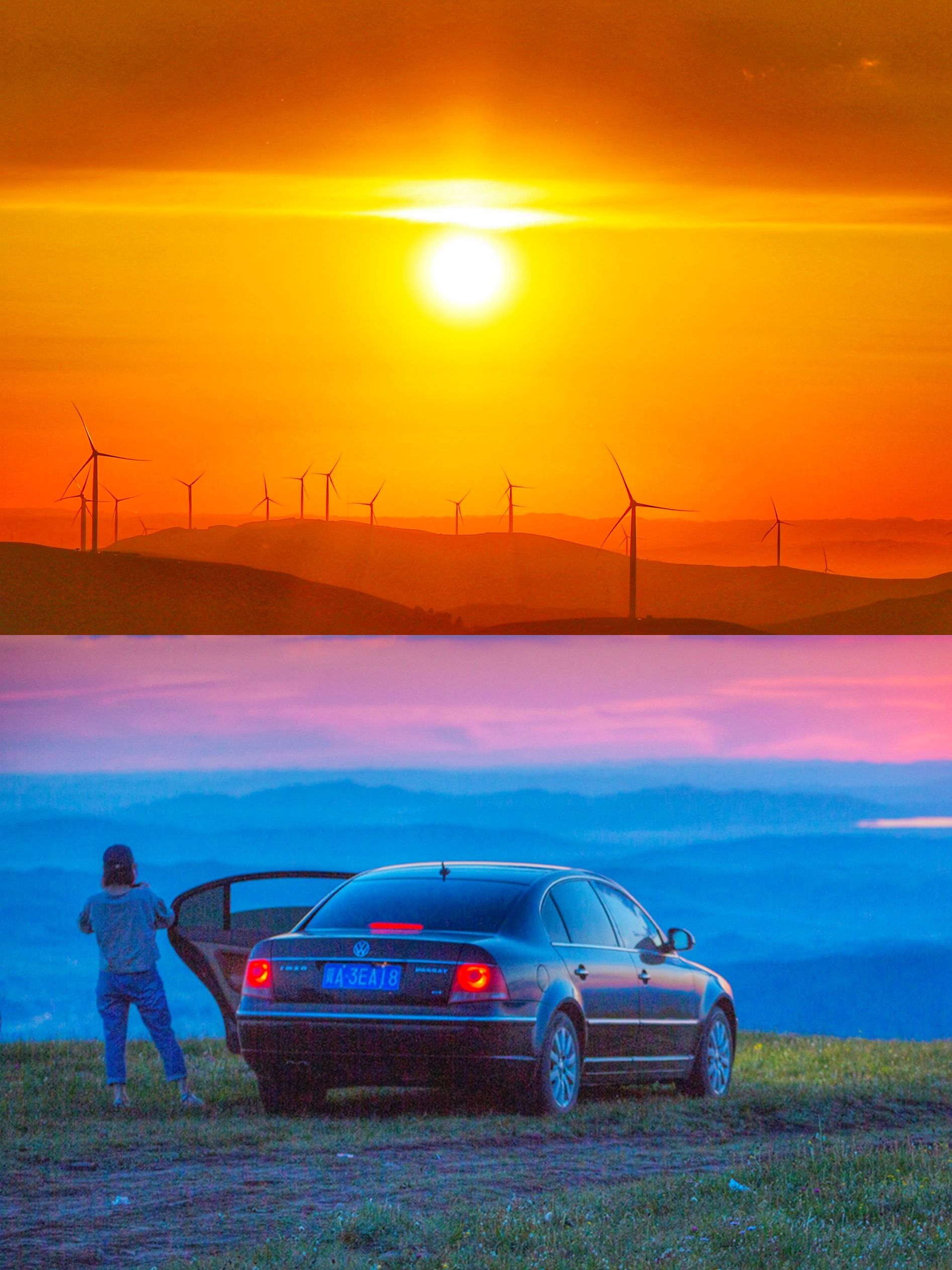 光明顶,全景草原全是光伏风车,拍出来画面干净通透