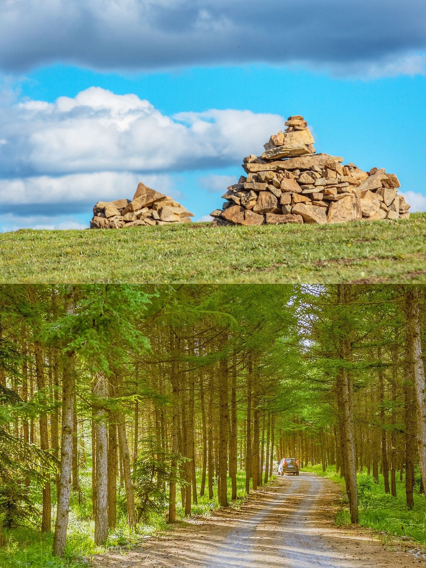 Day 2,南口进入(网络票只能从南口进噢百里天路门票120元,有包含千松坝,学生/老人半价。) 百花坡花海 骆驼峰看奇石 天地T台俯瞰千松坝 流云岭雨后云海 风车伴桦 茶盐堡的古道文化 五色花田 天之尽头的茫茫草原 北口出接1号风景大道,全程约4小时