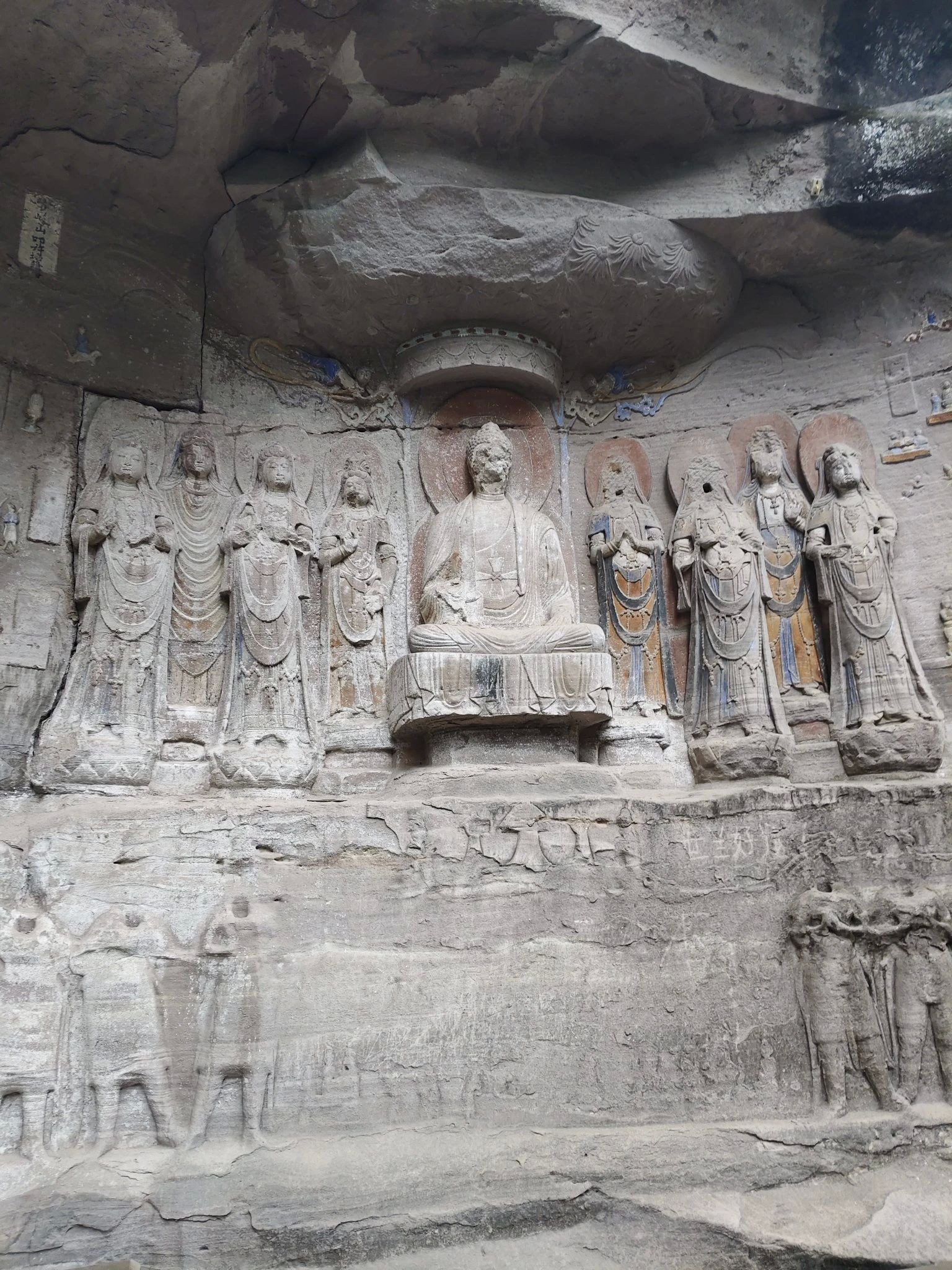 历史文化:造像始于隋开皇十三年,终于民国年间,以唐开元至南宋庆元四百六十多年为鼎盛时期,现存大小龛窟105个,造像3061躯,摩岩佛塔或浮图7座,唐碑3块,题记26处。