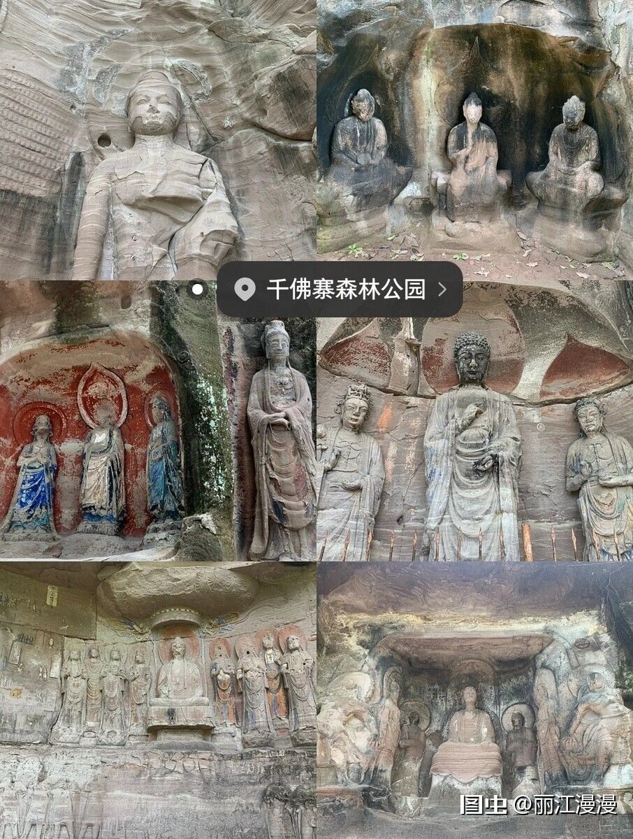 ?千佛寨:唐代名“栖岩寺”,清代康熙年间更名“千佛寺”。千佛寺原有殿宇5重,千百年沧桑,几经兴废,至1974年,一精神病患者又将仅存的大雄宝殿付之一炬。现在这里没有了寺庙,只留下了寨崖上那几千尊造像,故群众又称它为千佛寨。如今的千佛寨景区整体不完善,指示牌不清晰,可以多问。最值得看的是唐代大佛(左上)、唐代观音龛(左中)、唐代药师佛经变龛(左下)、北宋西方三圣龛(右中)。