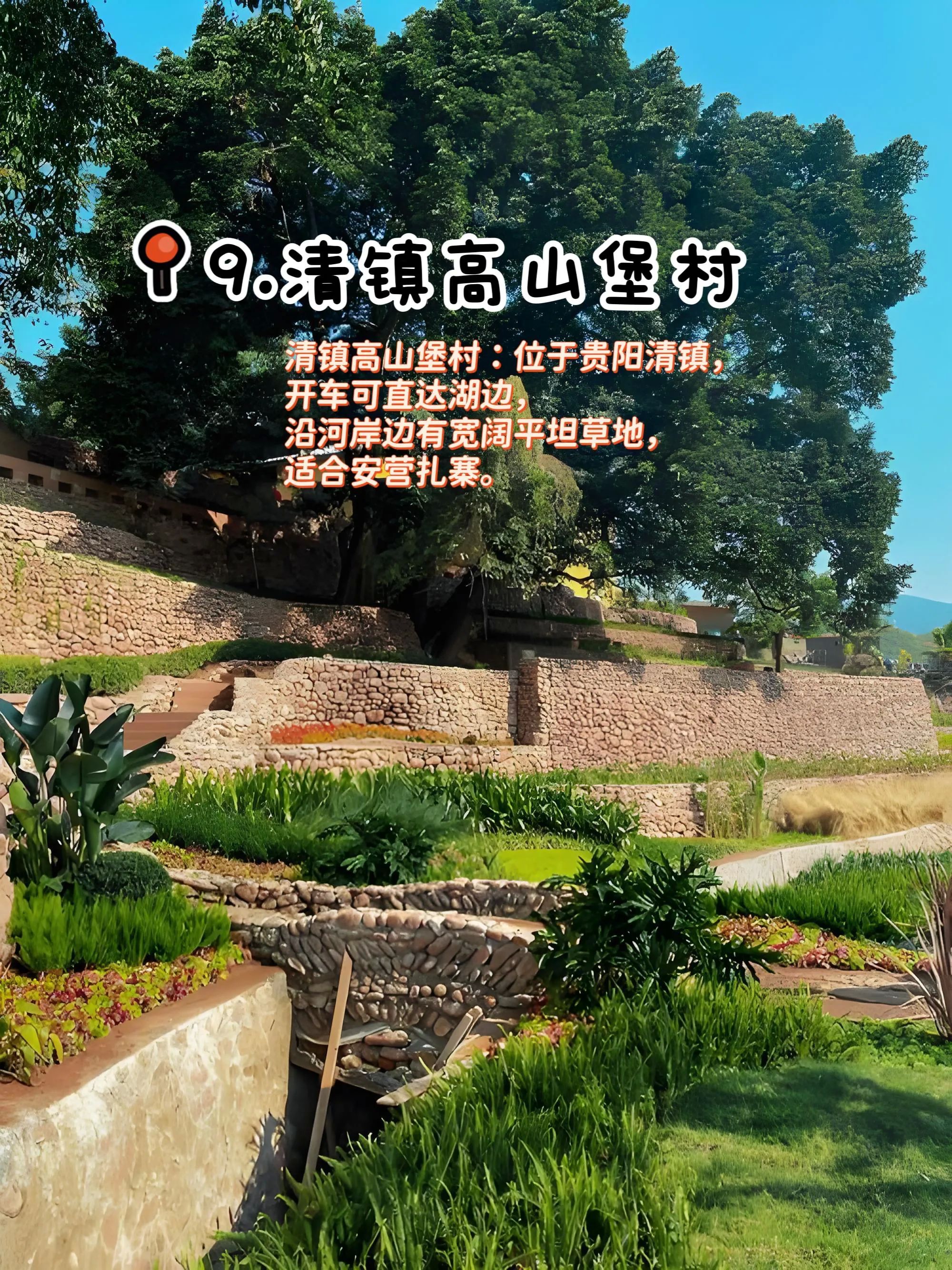 9. 清镇高山堡村:开车可直达湖边,沿河岸边有宽阔平坦草地,适合安营扎寨,欣赏湖景 。