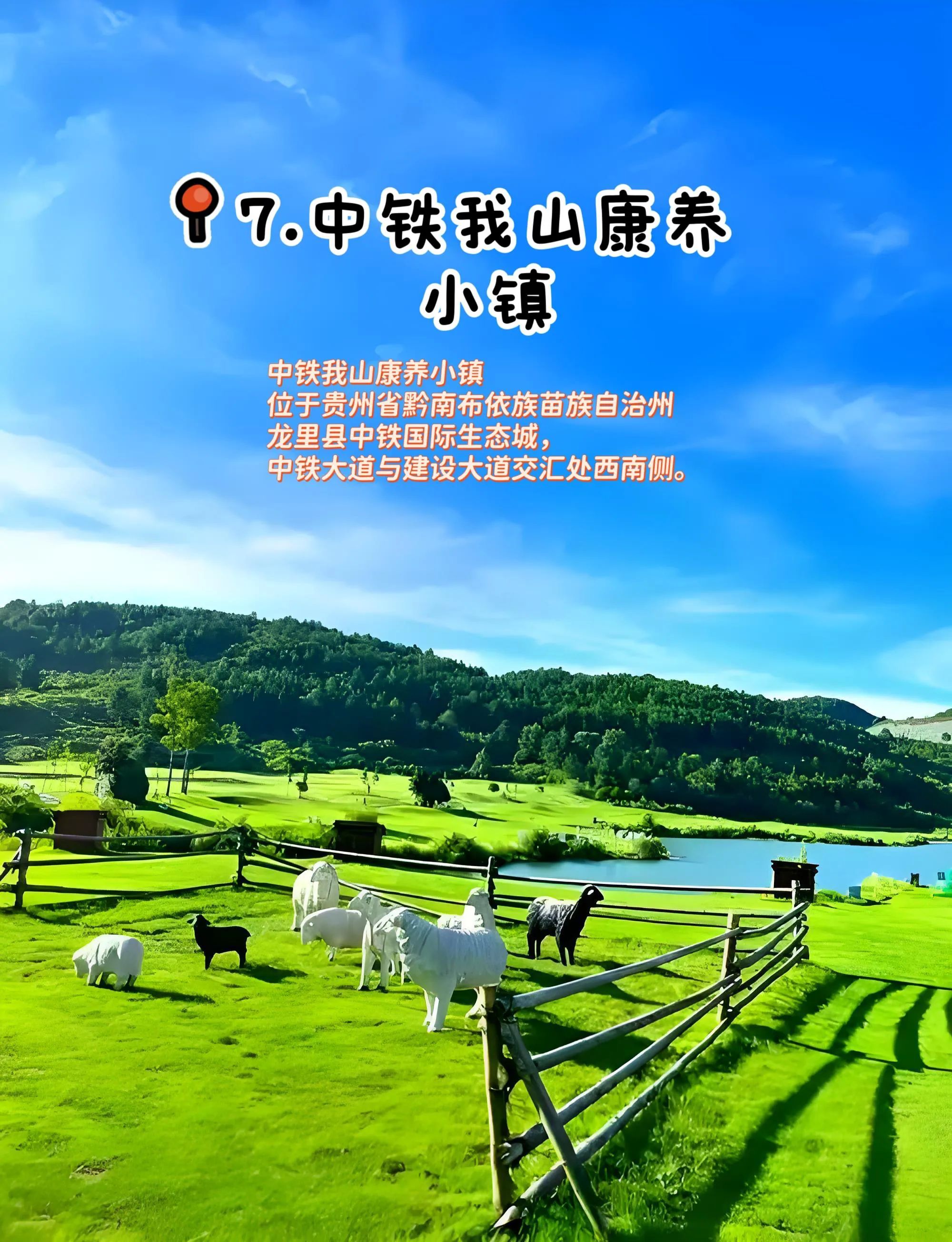 7. 中铁我山康养小镇:小镇内环境清幽,有山林、草地等自然景观,适合露营放松,还能体验康养项目,享受悠闲时光 。