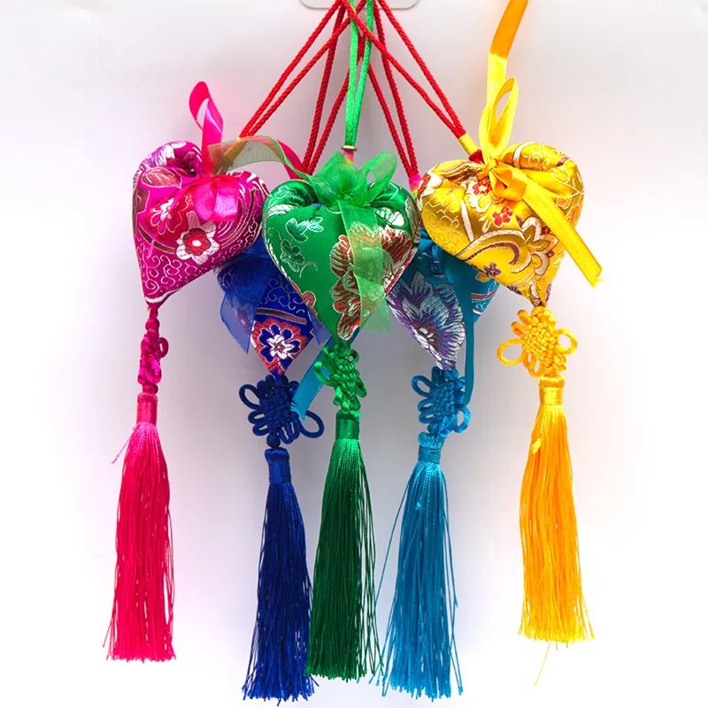 具有驱虫、祈福寓意,适合长辈或儿童。选择红、绿等吉祥色系,搭配丝带或流苏更显精致。