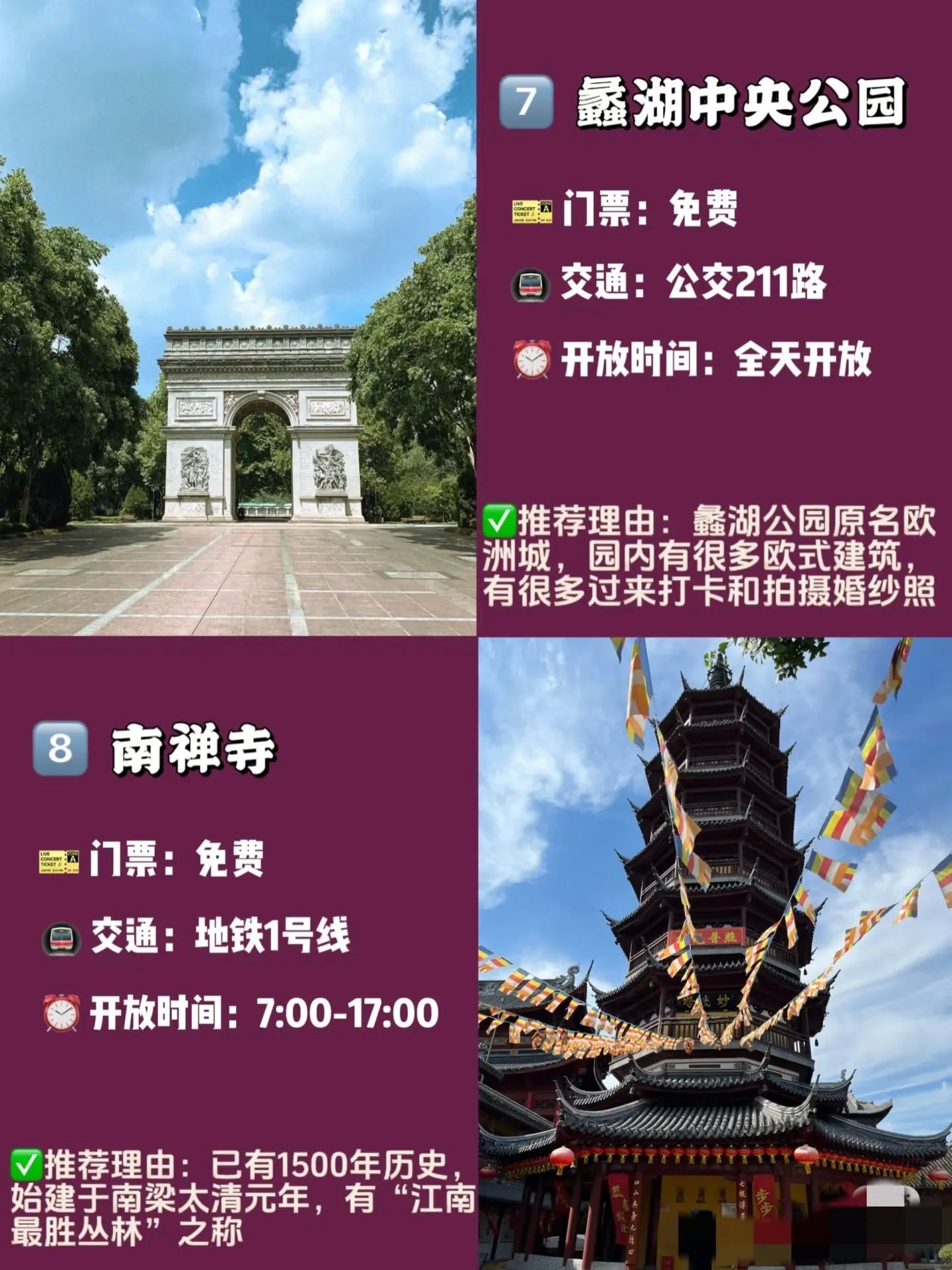 - 南禅寺:南朝四百八十寺之一的“江南最胜丛林”,寺内香火旺盛,周边还有热闹的美食街,祈福完就能直奔小吃摊。