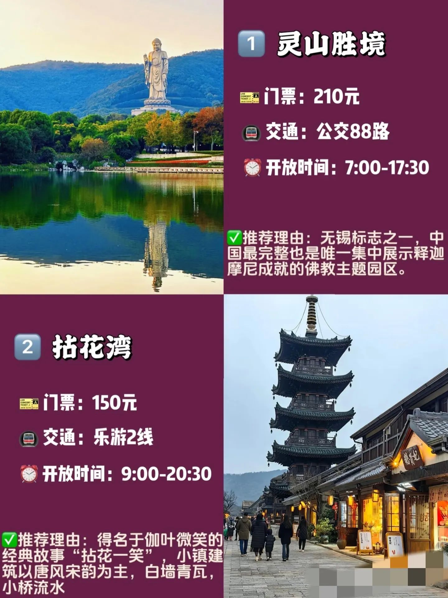 - 灵山胜境:作为世界佛教论坛永久会址,这里不仅是中国最佳佛光普照景区,更是感受传统文化魅力的必去之处,佛光缭绕的场景随手一拍就是大片。