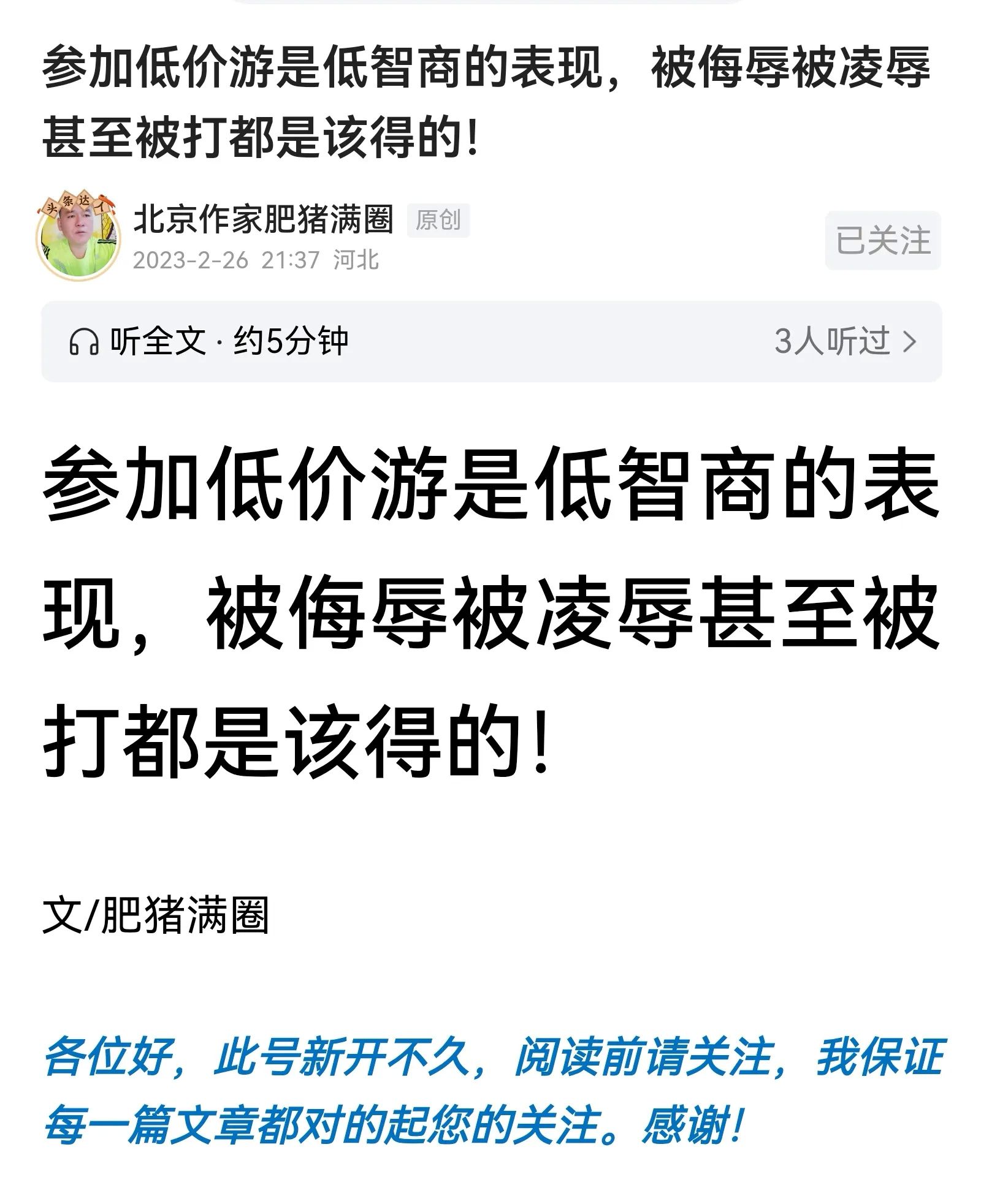 至于贪占便宜选择了价格低得离谱的、哄骗幼儿园级别的叫花子旅游团,确实需要旅游骗子们狠狠给这些游客一个教训,才能教得会他们什么叫做:贪小便宜吃大亏。10多年来,各地文旅局和旅游从业人员提醒了千百次,但这些人听不进去。