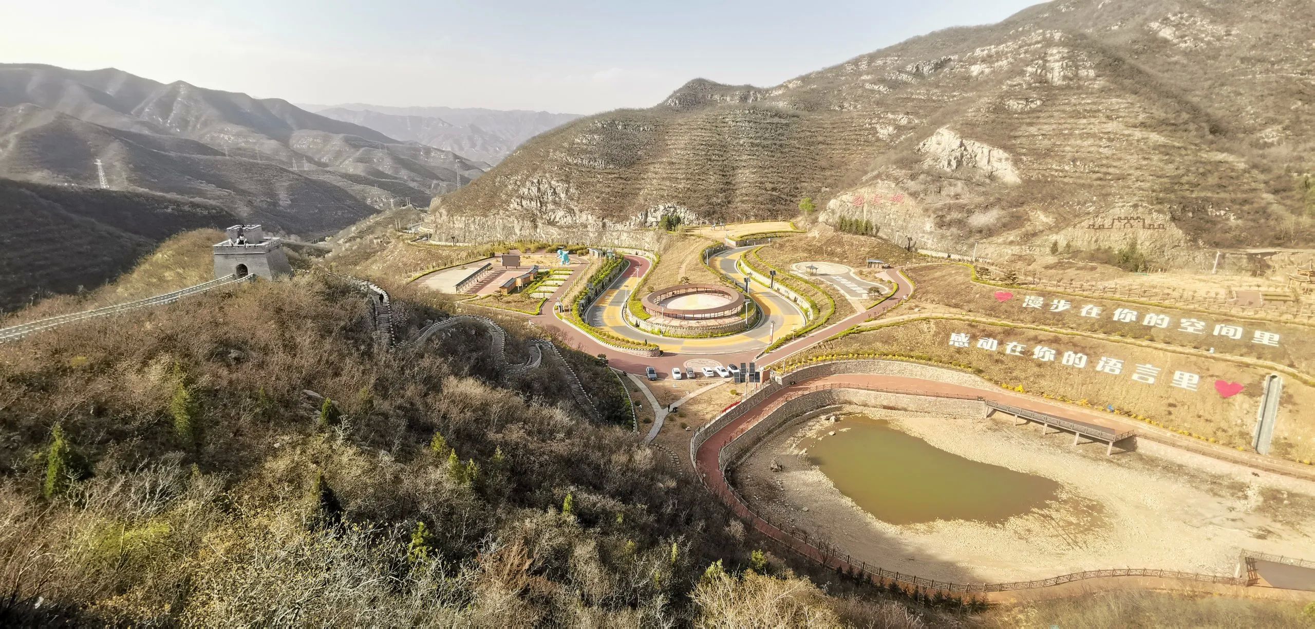 3.娘子关景区建议导航平阳湖景区,这里停车场充足,并且可以充电。从这里走栈道过水帘洞瀑布、花海至关城古街出娘子关口,约两个多小时。确实娘子关口这里路两旁停满了车辆,虽免费,但容易刮蹭。无论从哪个口进,都需要从另一个口扫码电动车回至停车处开车。