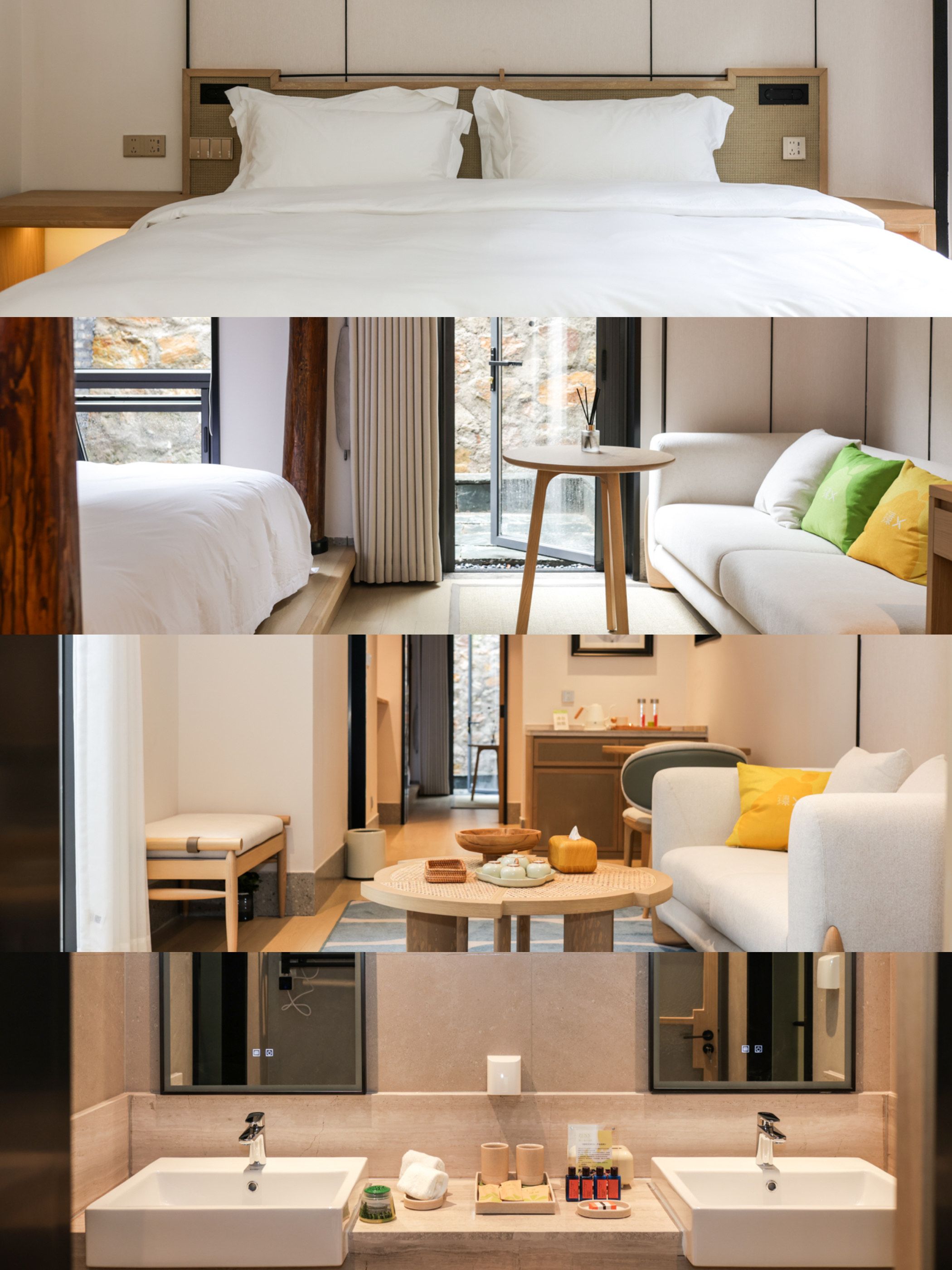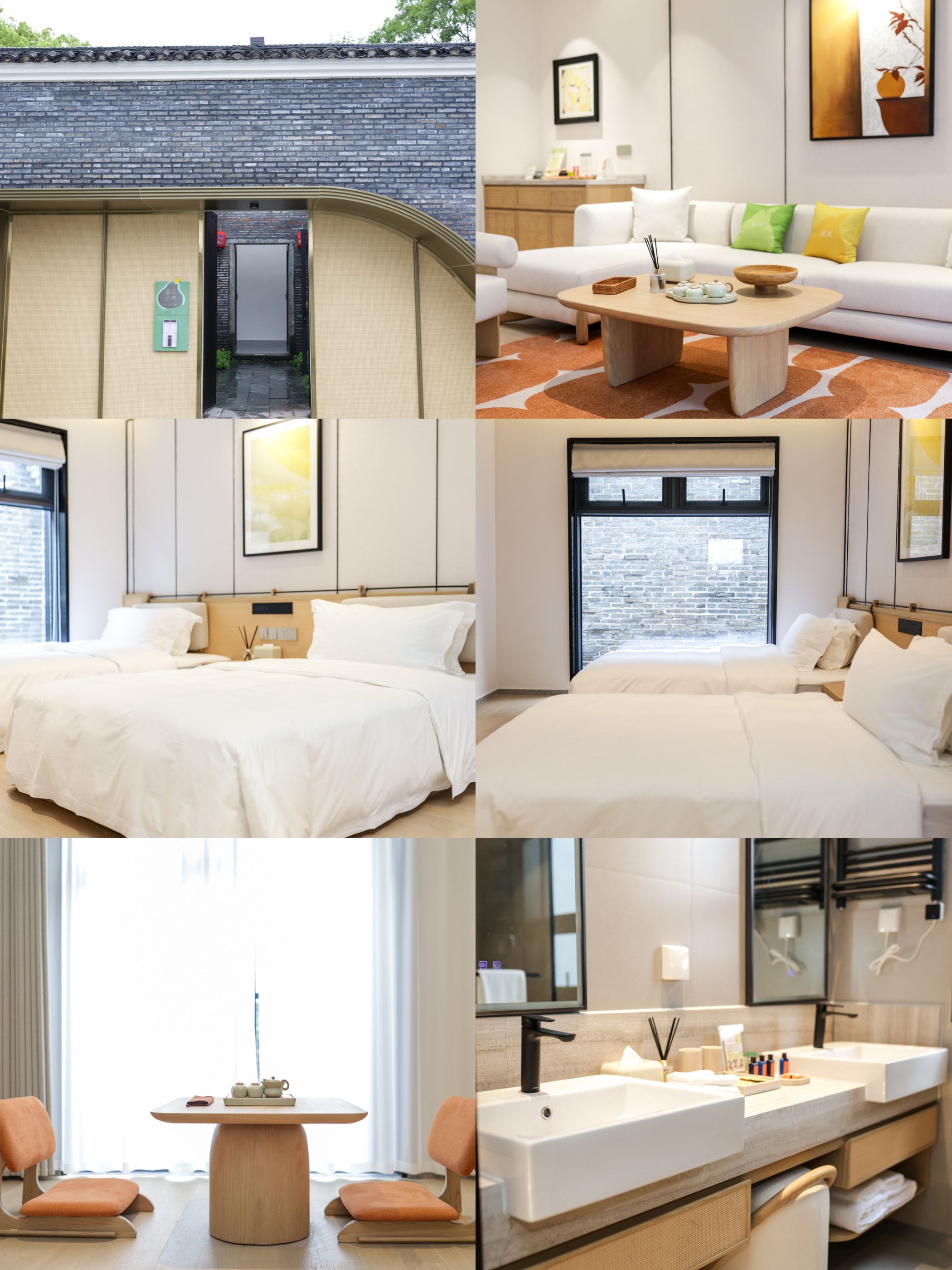 游玩古村,推荐入住臻X酒店。它落址欧阳氏总祠与“七星伴月”古塘景观带交汇处,由28间明清赣派建筑改造而成。酒店以当地盛产的井冈蜜柚为灵感,大堂和客房到处都有柚子的元素,很有特色。客房将青砖灰瓦与原木极简风混搭,充满自然的原始肌理 ,让人一进门就感到放松。