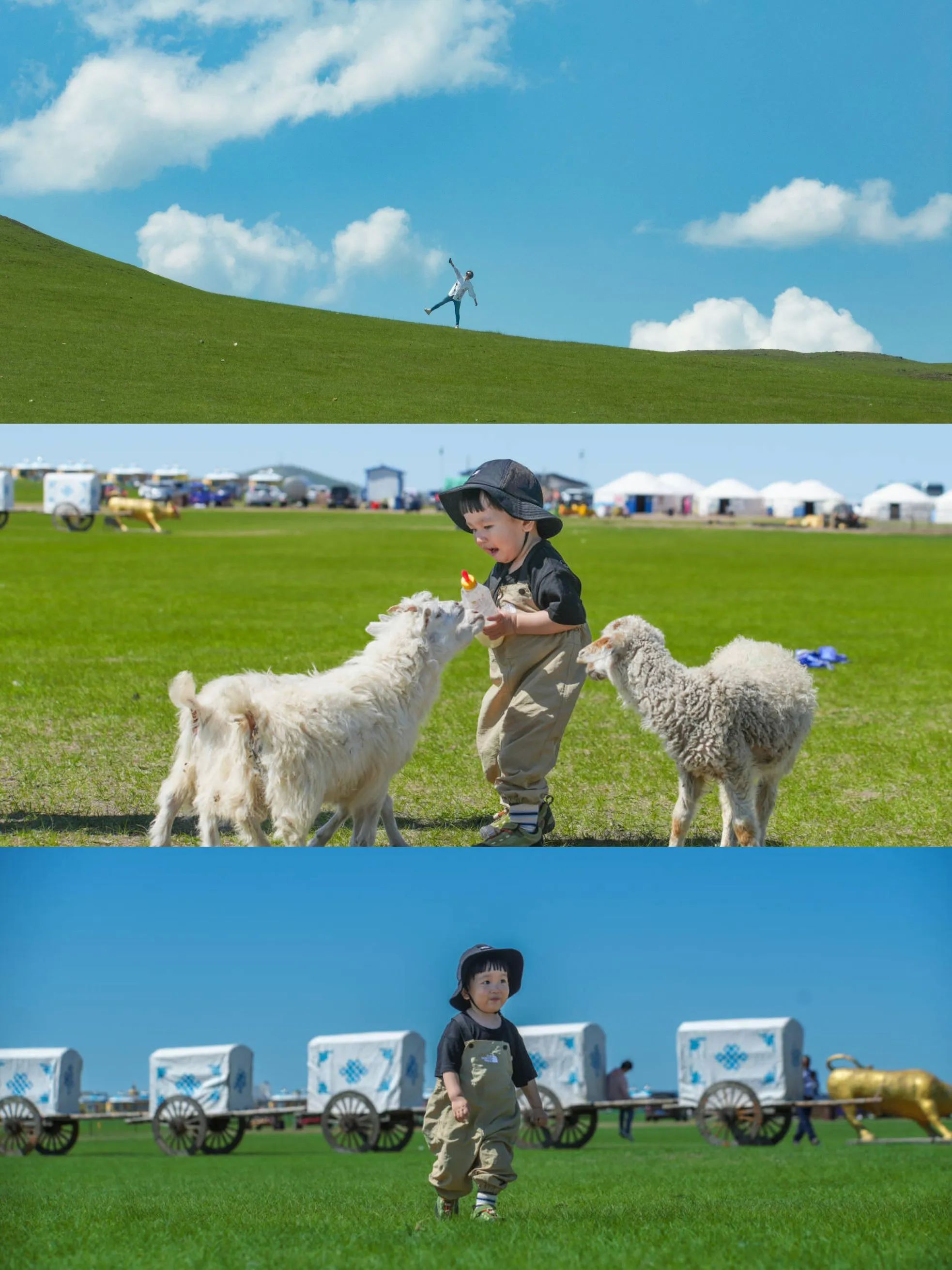 孩子体验挤牛奶、喂小羊,穿蒙古服装拍照。还能骑马驰骋、坐小火车赏景,全方位感受草原魅力。