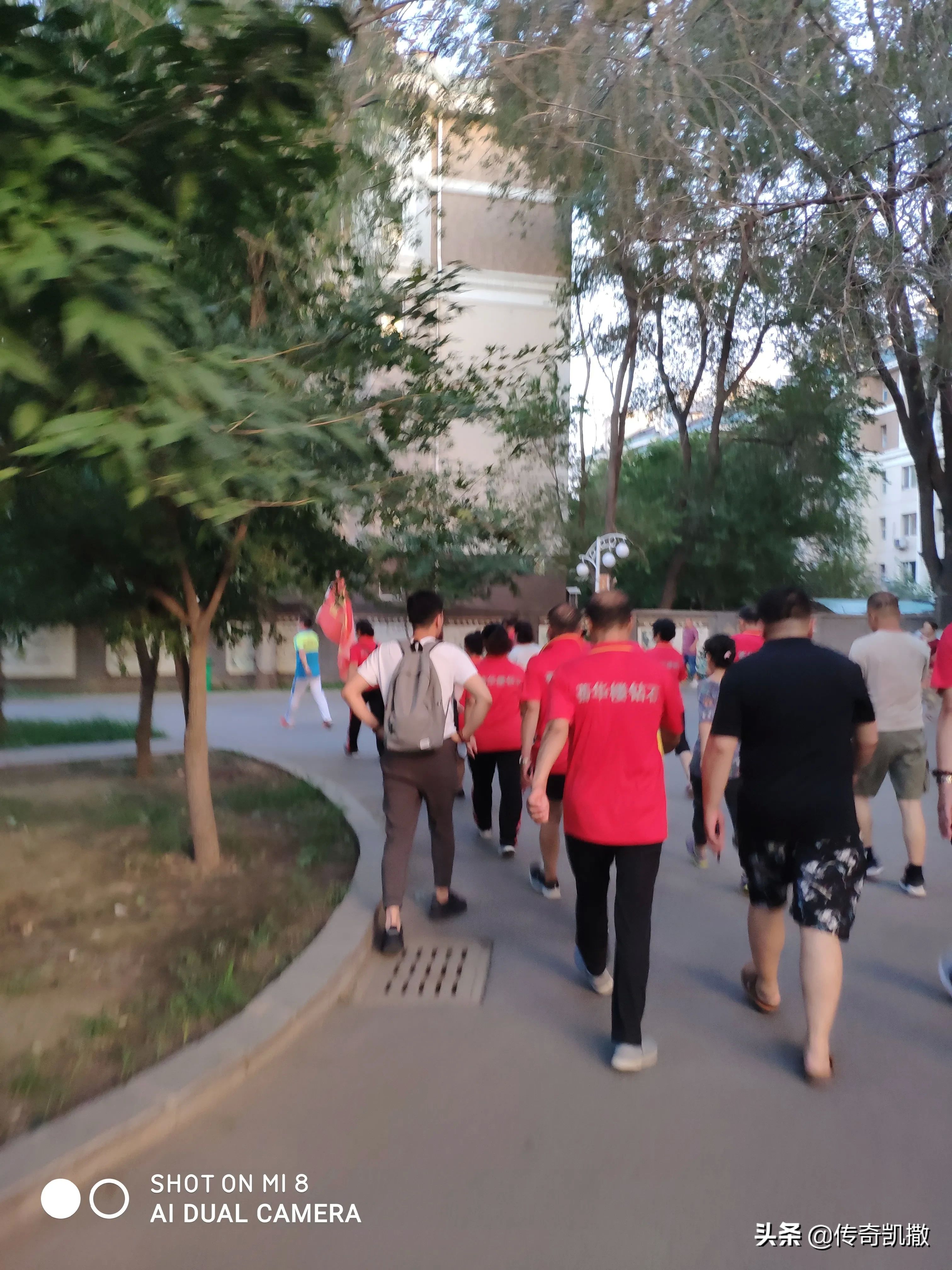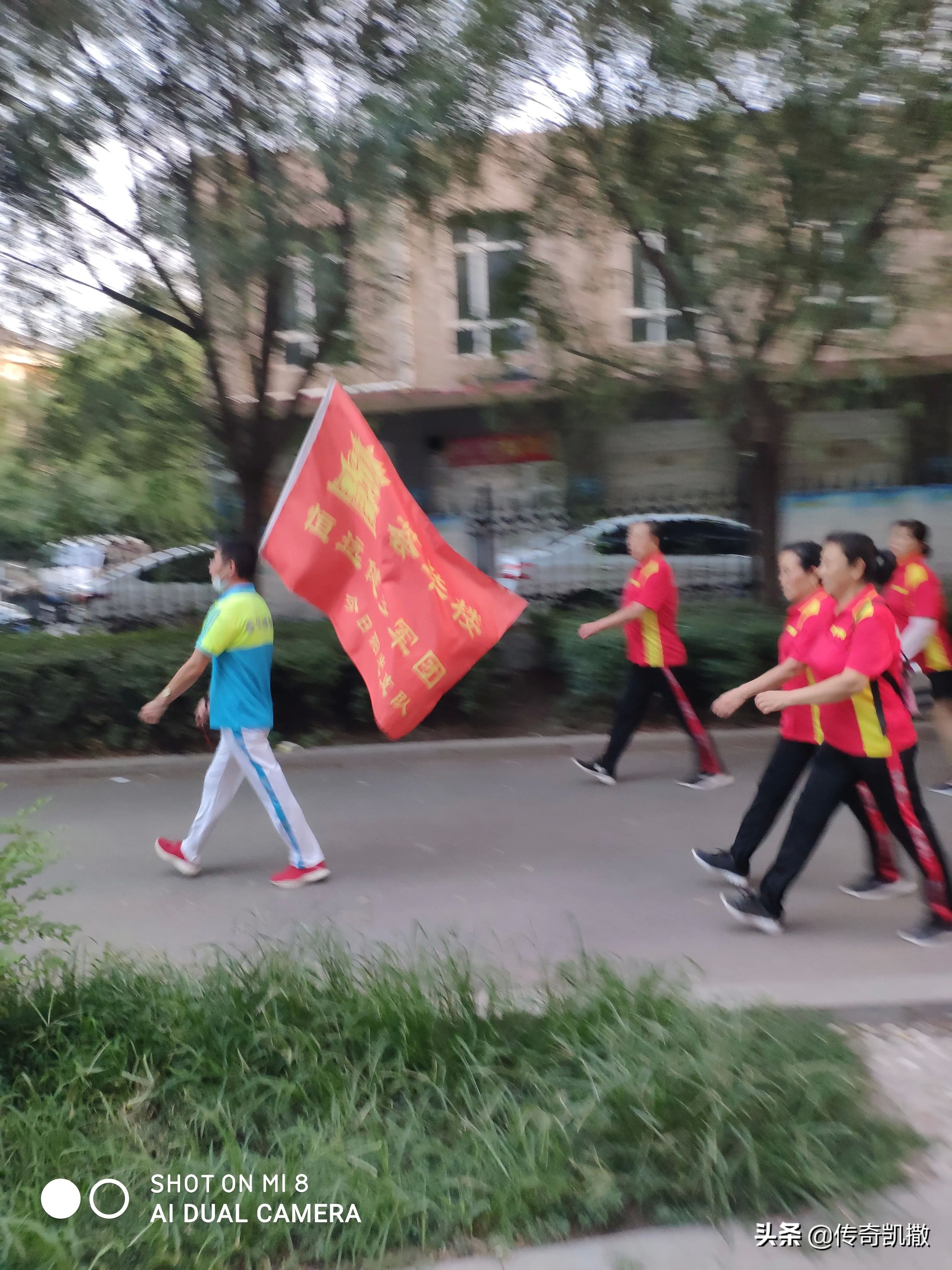 刚才与媳妇儿去家附近的小广场遛弯,看有健步走的队伍,共有三支队伍,我俩挑了一支走速较快的跟在后面走了起来。