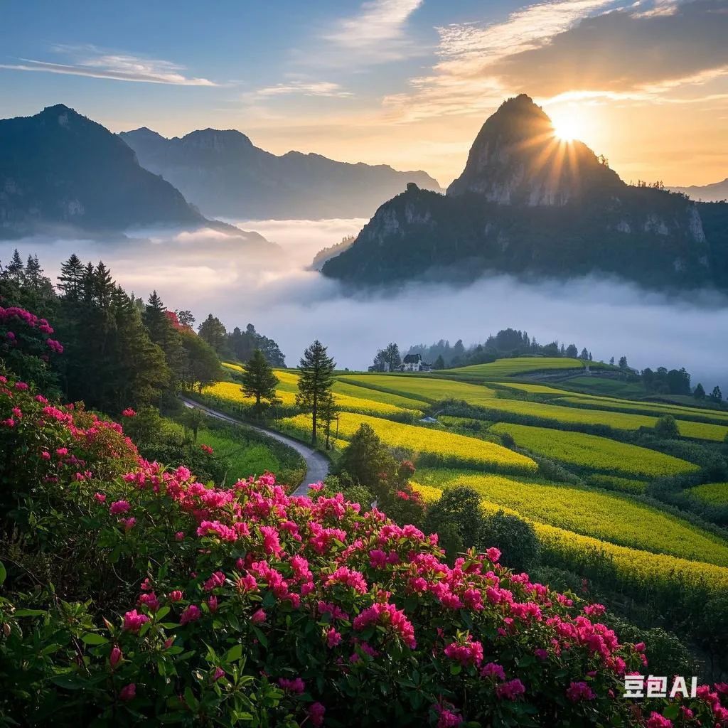 而当夕阳跌进九皇山的峡谷,那些高海拔的杜鹃,正用燃烧般的姿态,告诉世界——