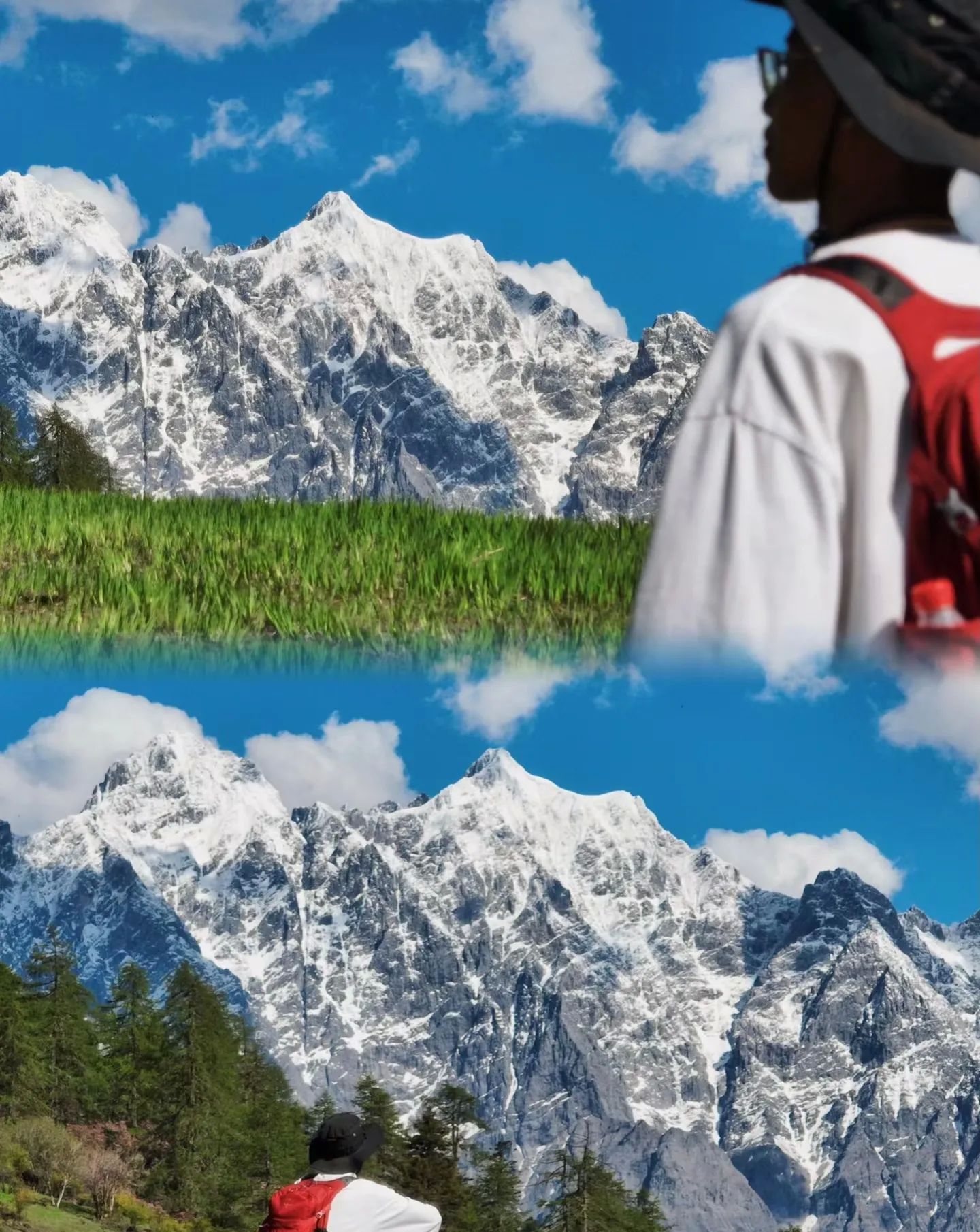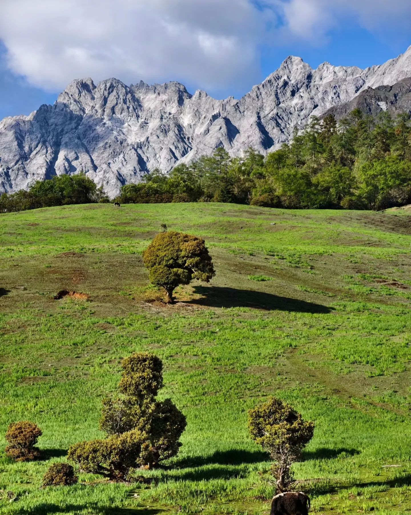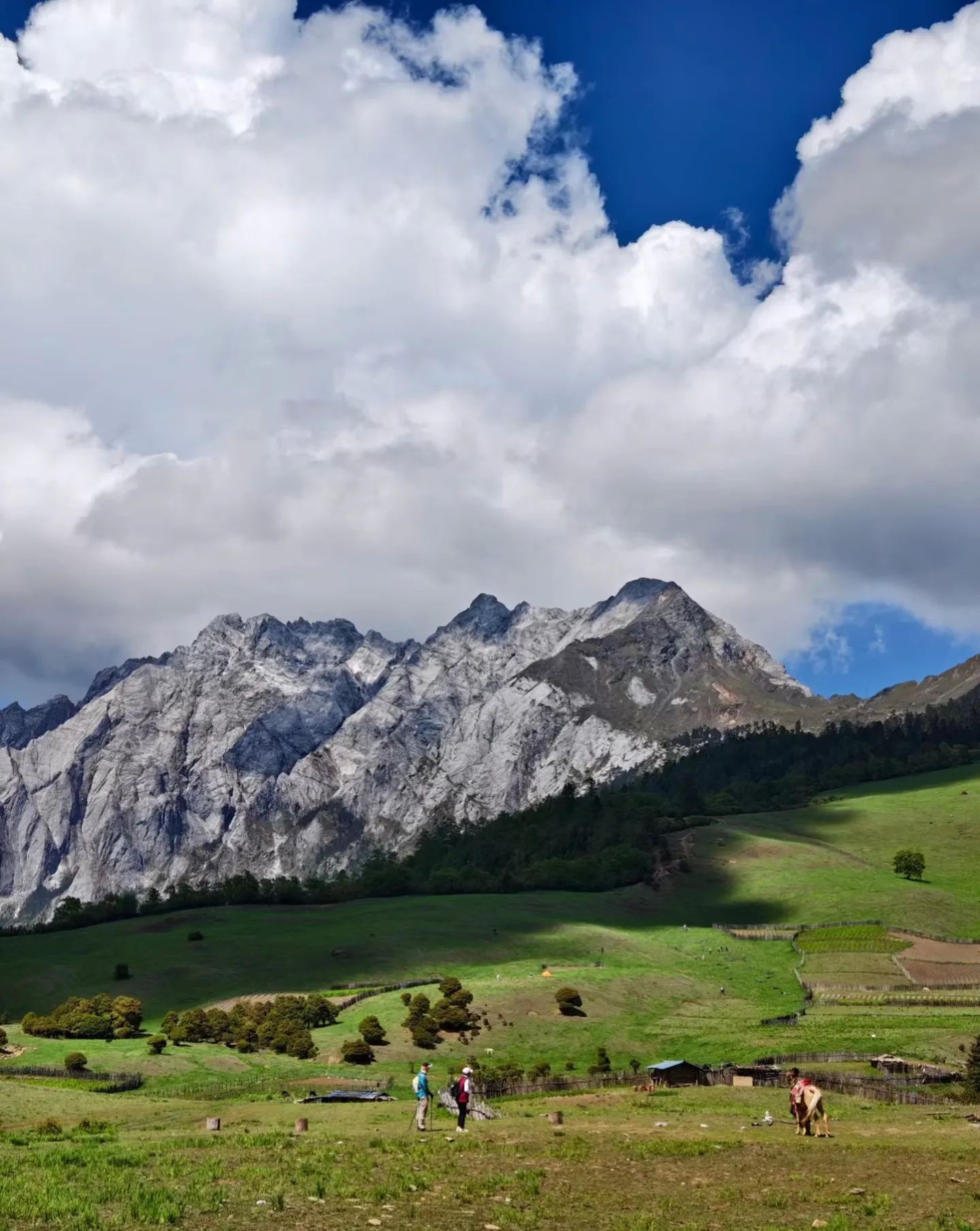 这里被玉龙、哈两座雪山夹在中间,一路在雪山脚下徒步,原始森林、茂密草甸,木屋农场,不出云南也能享受阿勒泰同款风光