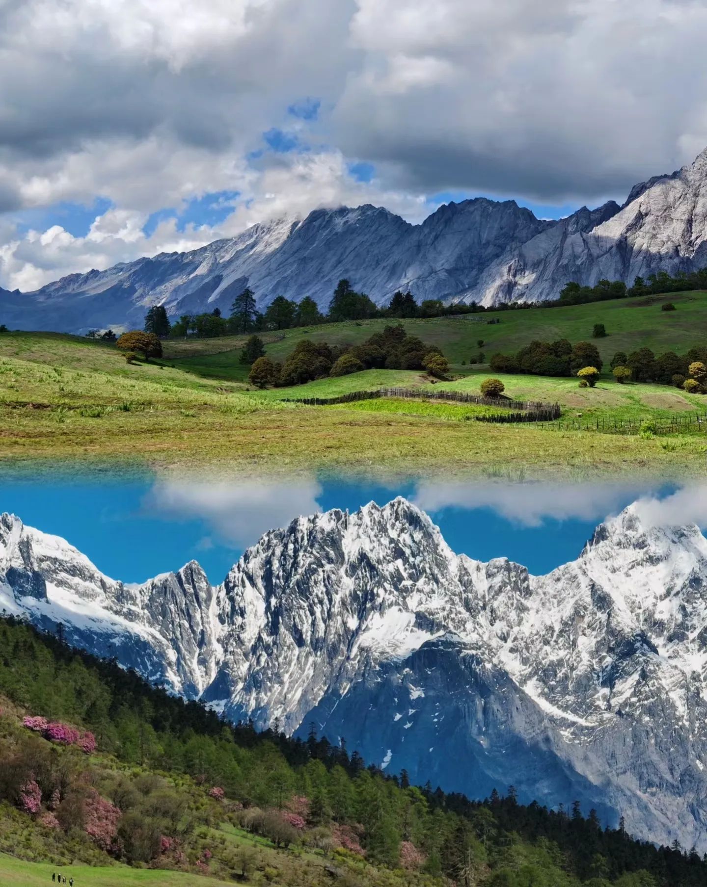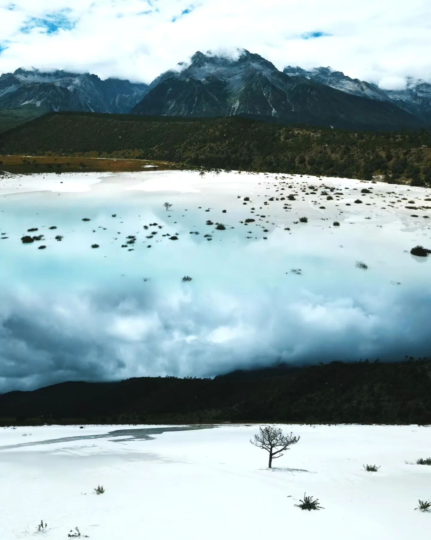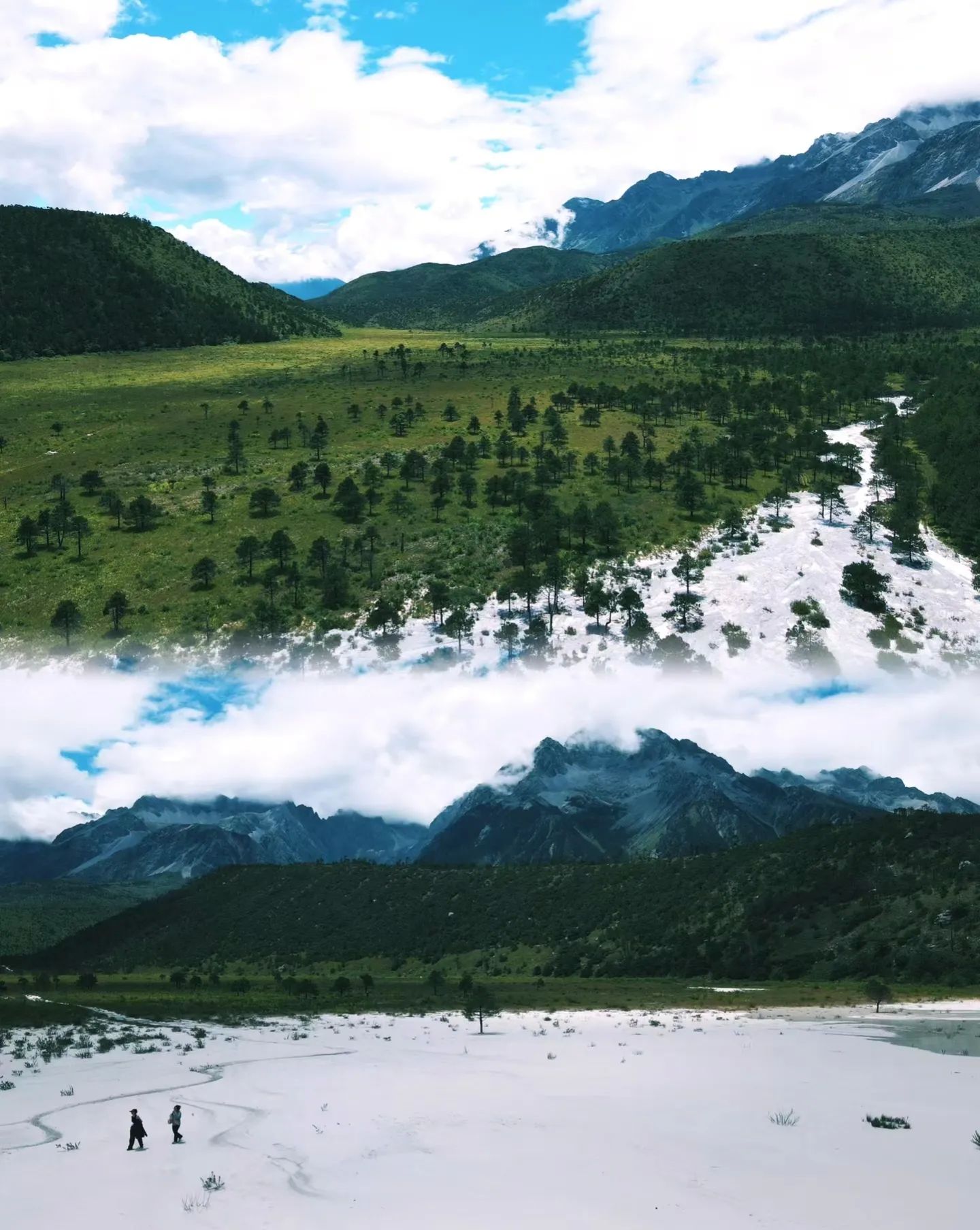 这里被玉龙、哈两座雪山夹在中间,一路在雪山脚下徒步,原始森林、茂密草甸,木屋农场,不出云南也能享受阿勒泰同款风光