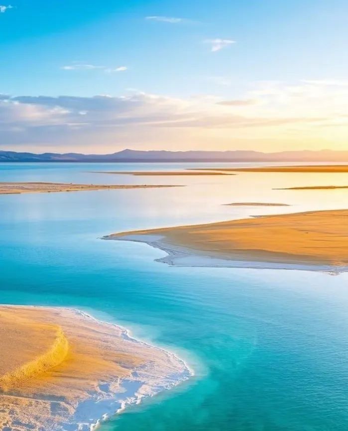 视觉暴击:湖水是梦幻的蒂芙尼蓝,湖底的盐晶体像碎钻,光脚踩在浅滩上,感觉自己站在玻璃海上;