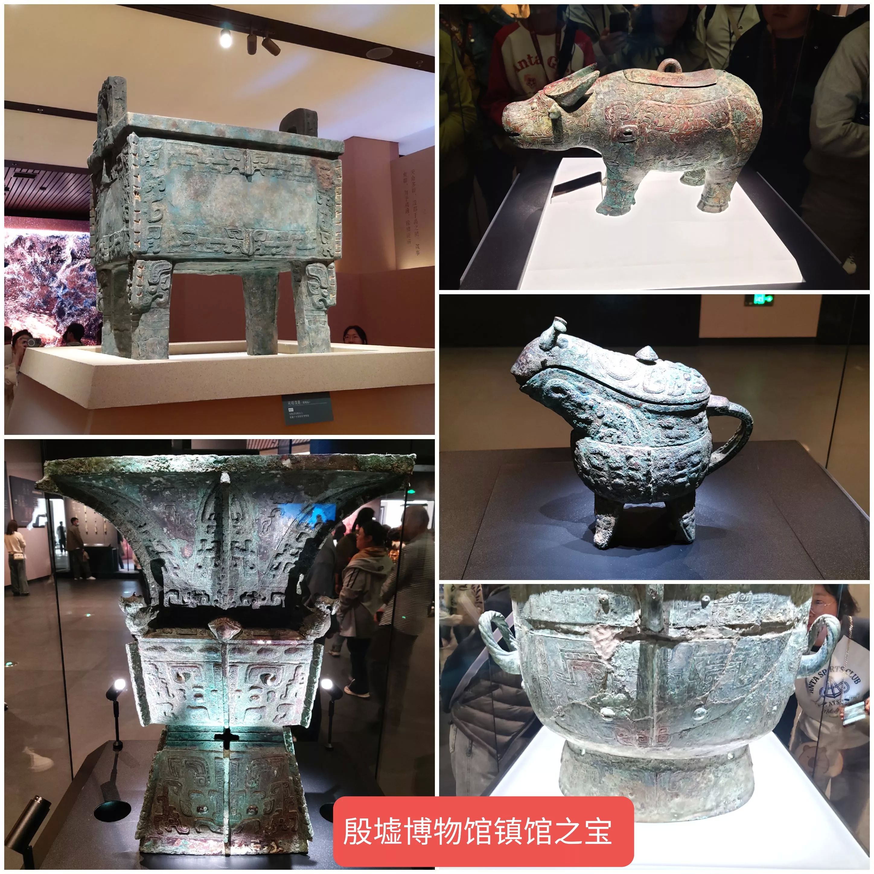 参观殷墟博物馆是来安阳的重头戏,殷墟博物馆(殷墟研究院、商文明博物馆)(门票50元/人)位于安阳洹河西岸、殷墟宫殿宗庙遗址与洹河之间的狭长地带。2024年2月才开馆得殷墟博物馆新馆,确实气派,地上共三层,是首个全景式展现商文明的国家重大专题博物馆,是黄河国家文化公园重点项目之一。有资料表明,安阳殷墟是世界文化遗产,新馆的建成开放,既是殷墟已有考古研究成果的全面梳理总结和全方位呈现,也是新时代殷墟保护利用工作的一个新起点,具有承前启后的重要意义。的确如此,名不虚传。多个镇馆之宝都在图片中。