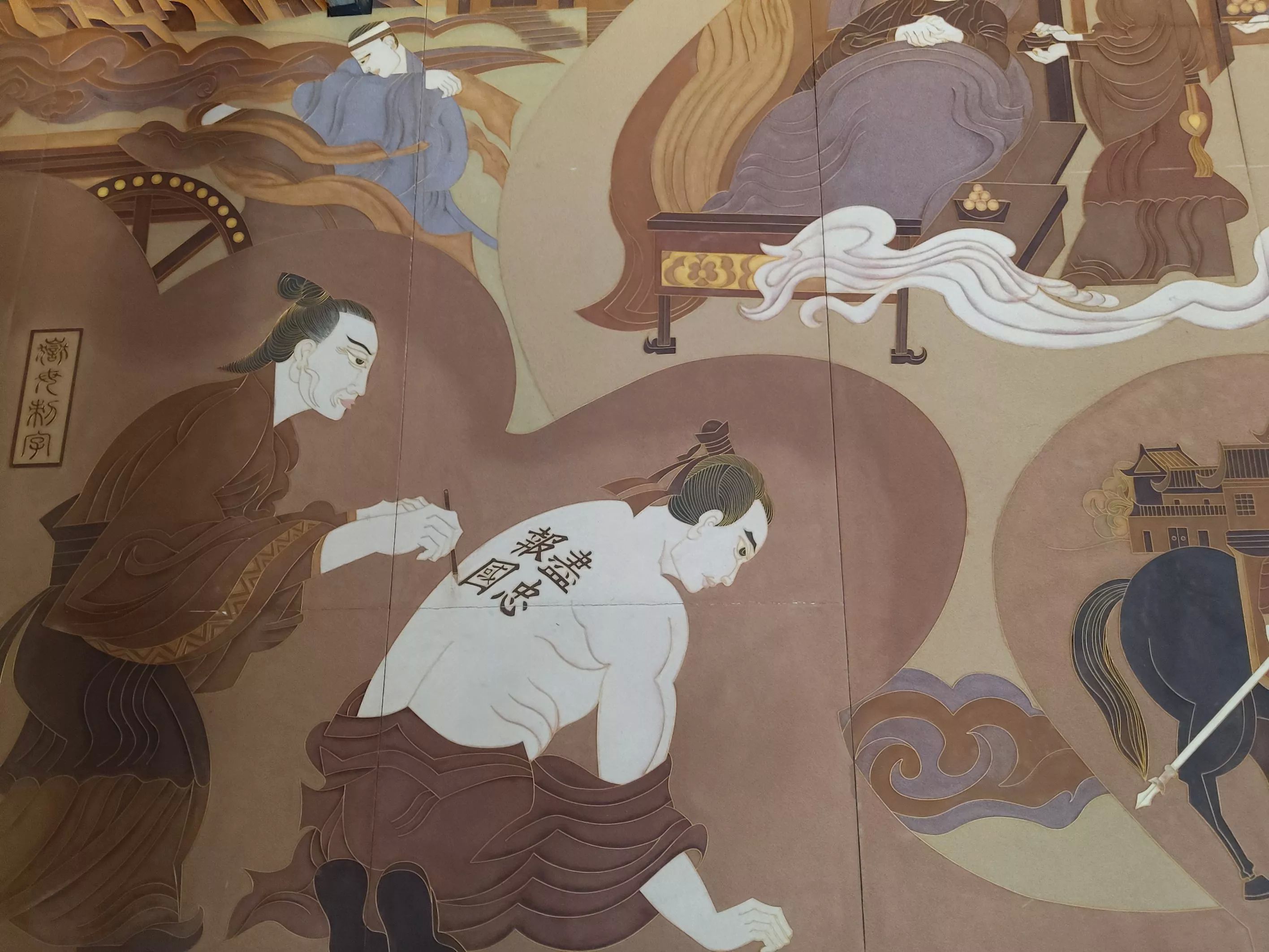 应该说,安阳对家乡人岳飞是非常重视的,汤阴岳飞庙(门票50元/人)周边环境虽然商业较多,但管理是很到位的,而且停车(地上、地下都有)、引导等很到位,尤其在接近岳飞庙的岳庙街口,特意修建了环岛,耸立起高高的岳飞骑马塑像。岳飞庙,又名宋岳忠武王庙、精忠庙,始建年代不详,重建于明景泰元年(1450年),是一处保存较为完整的明、清古建筑群,豫北最大的古建筑群之一,中国三大岳庙之一。有两点要说,1、岳飞庙几乎所有古建筑和壁画,都是近年重新描绘的,但质量很高,与其他古建筑相比,几乎远远超过。2、新建的岳飞展览馆,古建水平大打折扣,就像一座简易房,水平很差了。
