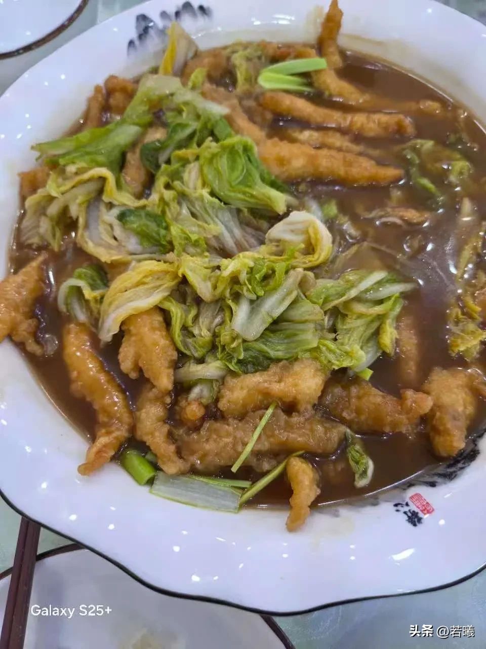 来到芙蓉商业街,找到了一家老济南风味餐馆,老板自称是临沂人。我们点了一盆“老济南烩松肉”、馒头没有(没馒头主食,也敢说是老济南口味[捂脸]),只好要了两碗米饭。烩松肉味道很是一般,松肉硬邦邦的,炖的火候明显不够,配菜白菜叶也有股怪味儿(可能不是吃白菜的季节缘故吧)菜汤也没有山东菜那种浑厚味道。这午饭,完全错乱了味蕾,朦胧了乡愁!匆匆扒拉了几口,扫码55元走人!
