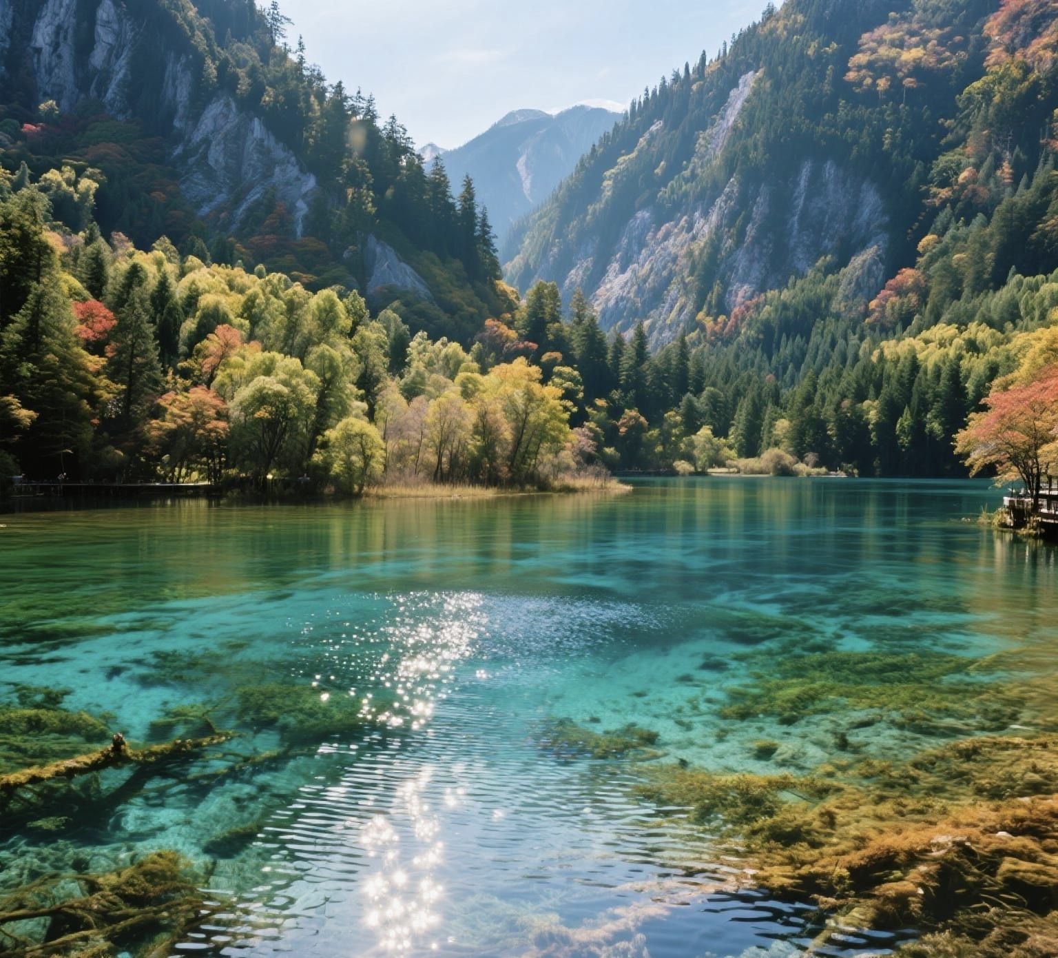 九寨沟(四川):秋天的彩林倒映在108个海子中,宛如打翻的调色盘,长海、五花海、珍珠滩瀑布美到窒息。