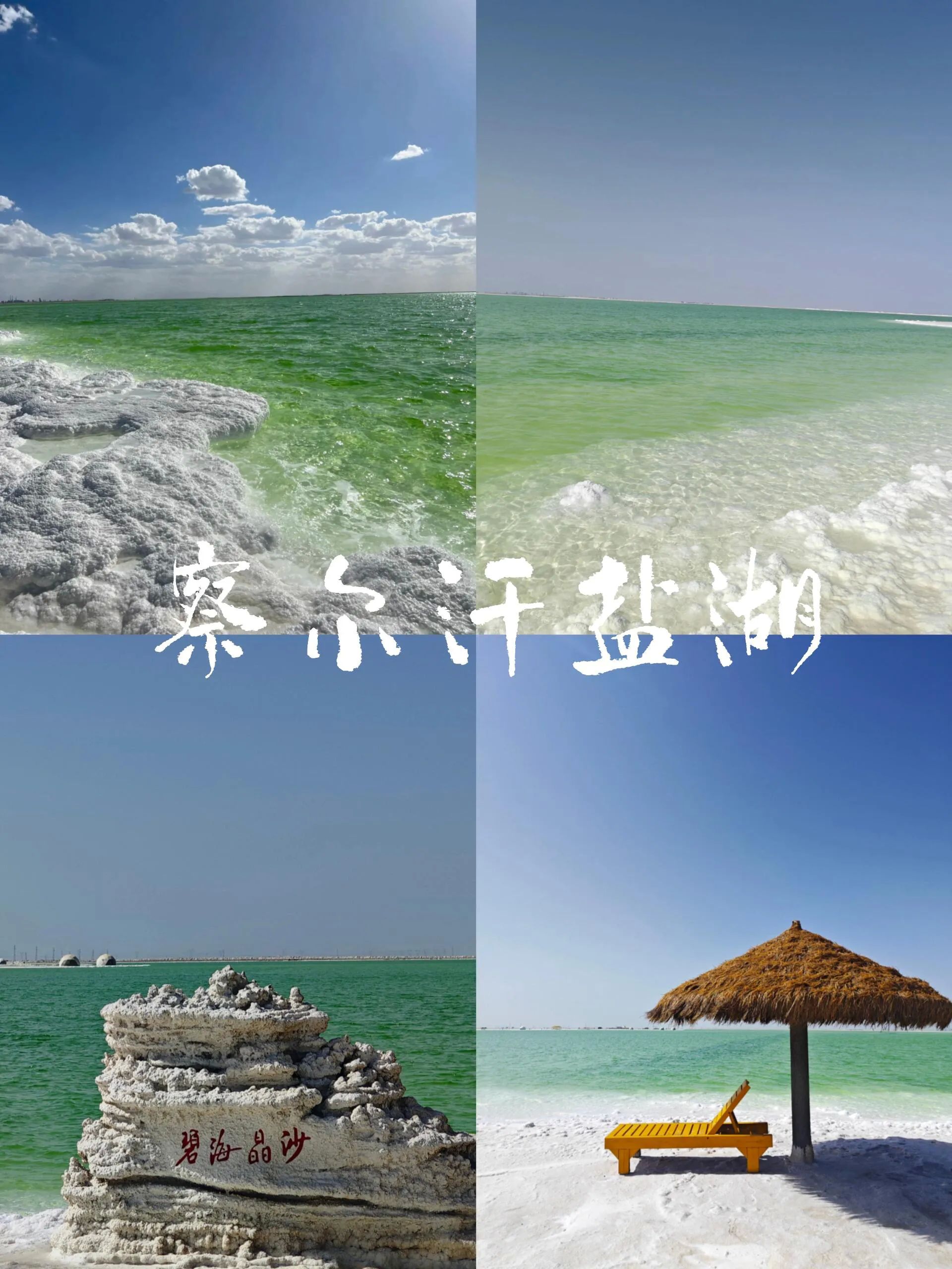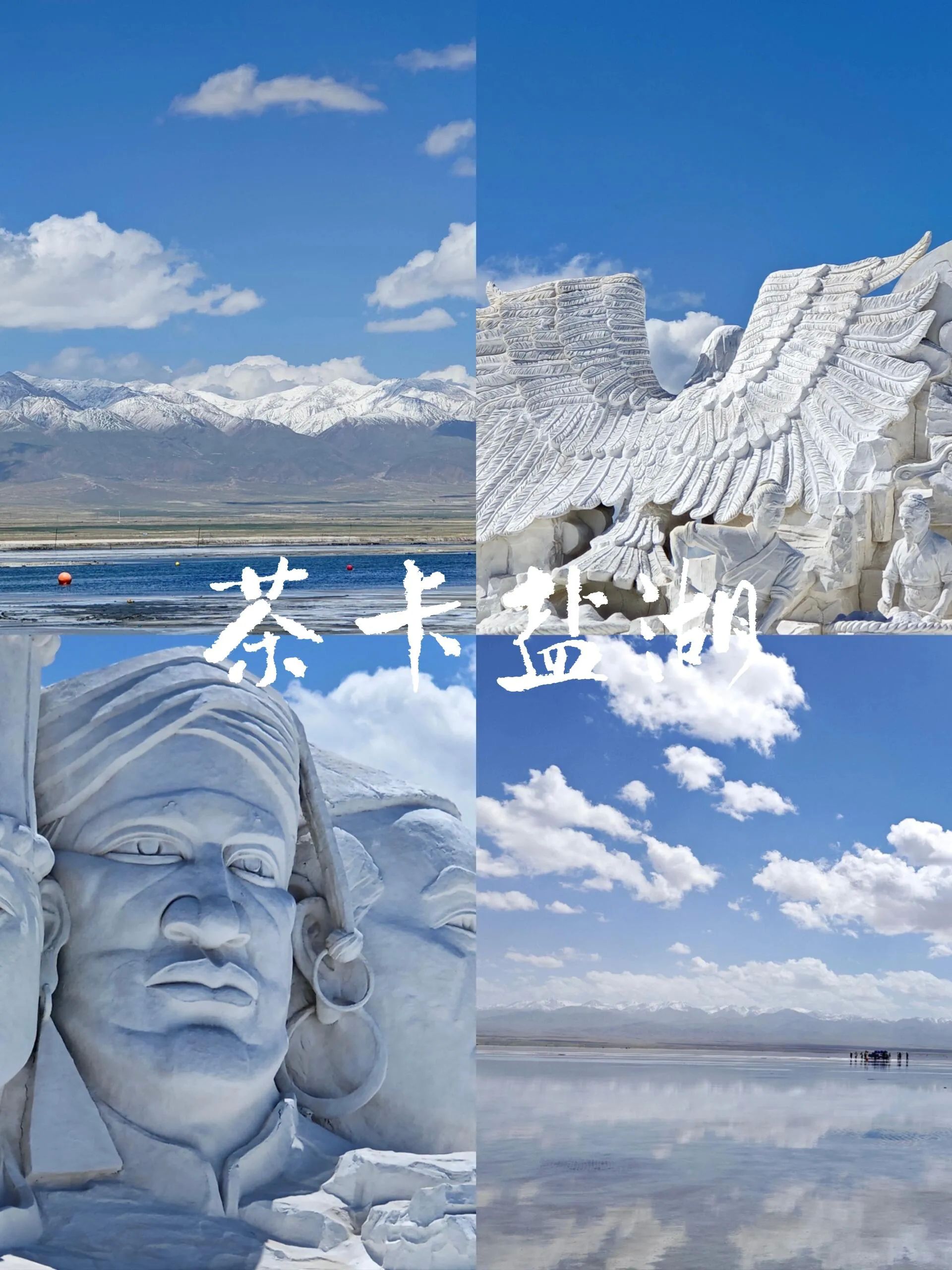 察尔汗盐湖,简直是上帝遗落在人间的调色盘。走进盐湖,湖面在阳光温柔的轻抚下,宛如撒满了细碎的钻石,璀璨夺目,光芒万丈。湛蓝的湖水与澄澈的天空相互交融,让人傻傻分不清哪里是天,哪里是湖,仿佛置身于梦幻的世界。