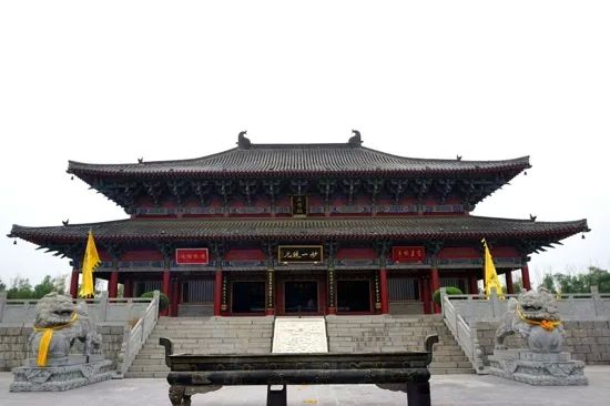 鹿邑文庙大成殿:位于鹿邑县城内紫气大道北县委院内,是一处规模庞大的县府学宫。大殿面阔五间,进深三间,单檐歇山顶,顶覆绿色琉璃瓦,琉璃大脊饰滚龙,中置兽驼葫芦宝瓶,整体雄浑凝重,古朴庄严,槛墙雕刻精美,展现出古代建筑艺术的高超水平。