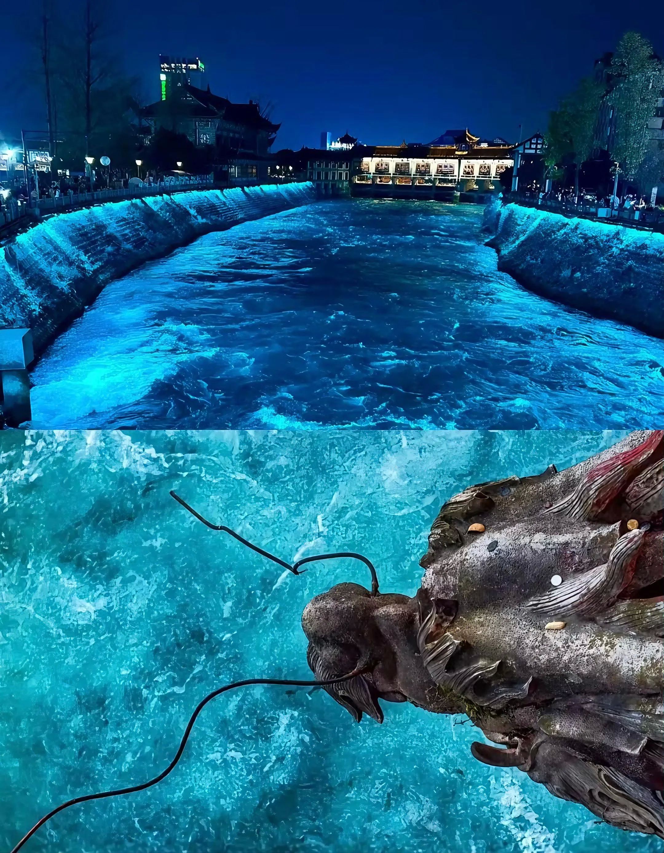 2、九眼桥夜景非常美,两侧动画片墙还有堤岸投影。锦里夜景满眼的红灯笼也不错,很有味道,适合拍照。