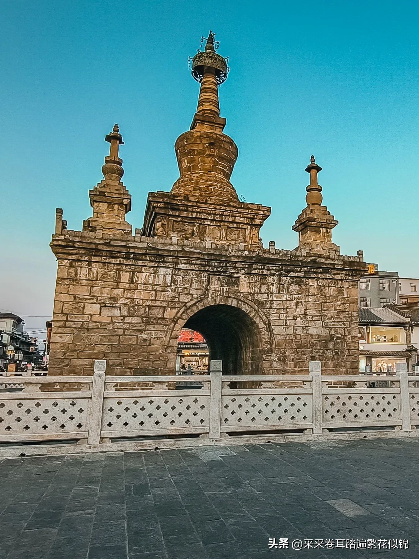 建筑景观中妙湛寺的金刚塔和双塔可以了解一下。这三座塔都是佛教文化的重要遗产,也是官渡古镇的地标。金刚塔始建于明,整个塔身全用砂石砌成。而双塔中的东塔始建于元,西塔清代毁于地震,2001年重建。