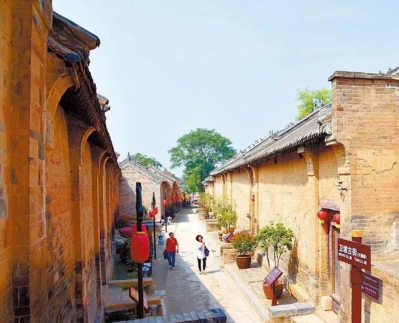 魏家坡古村落是魏氏家族兴盛时期建设的住宅群。相传,明末清初,一魏姓家族从济源迁居此地,至乾隆年间开始兴盛,民居建筑也多建于乾隆年间。卫坡古街,又称老街,全长186米,依地势而建,面南背北、东高西低蜿蜒而上如龙盘卧,古街地面由青石铺就,岁月的脚步把每块青石打磨的光滑发亮,就像龙体上闪闪发光的鳞片。古街与两旁宅院的墙体形成封闭的胡同,而东西出口各有一棵百年老槐树,东边的因酷似龙头被成为“龙头槐”。