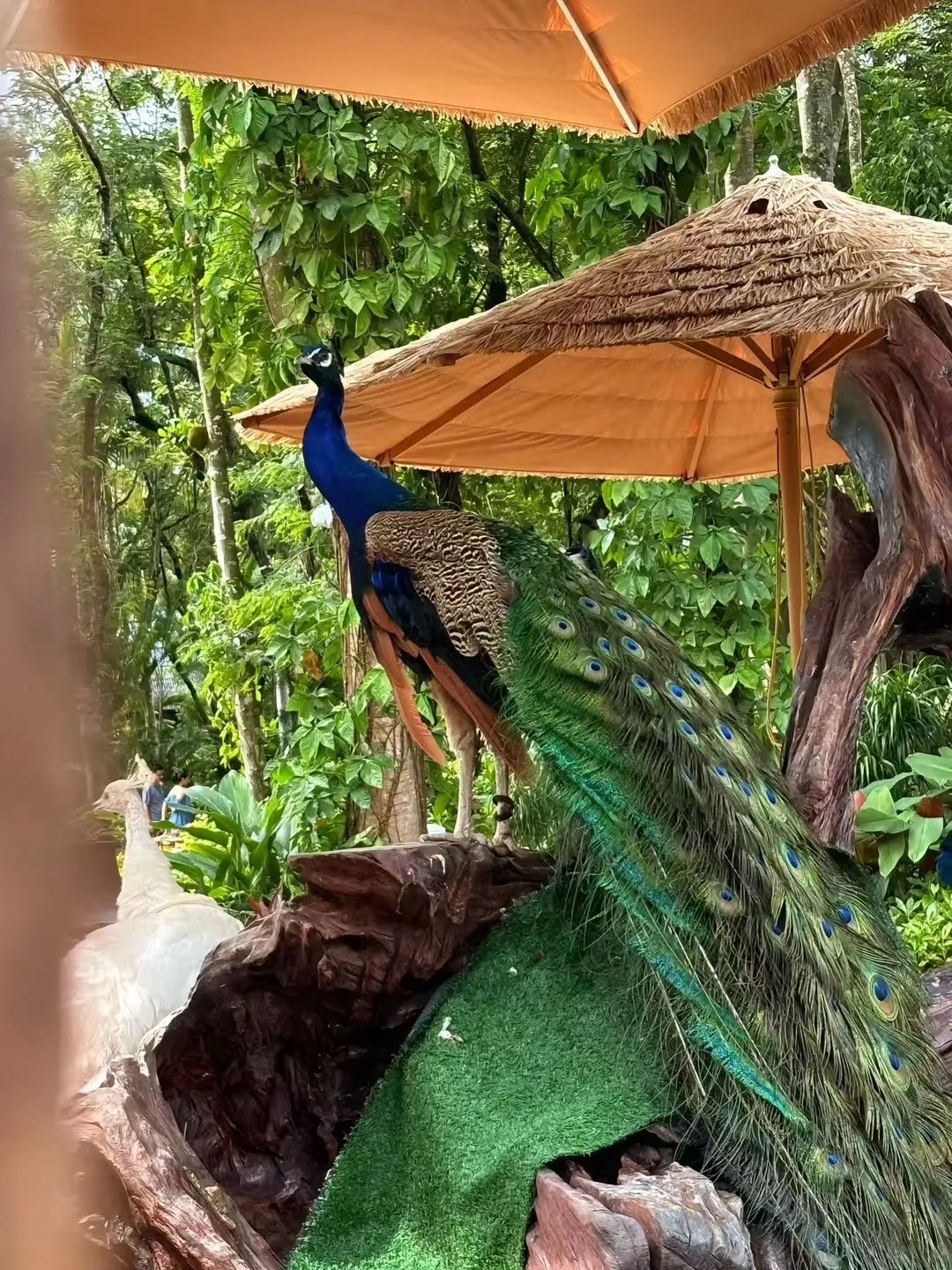 - 下午:到达原始森林公园,观看孔雀放飞盛景,走悬空栈道欣赏沟谷雨林风光,还可以体验丛林飞跃等项目。