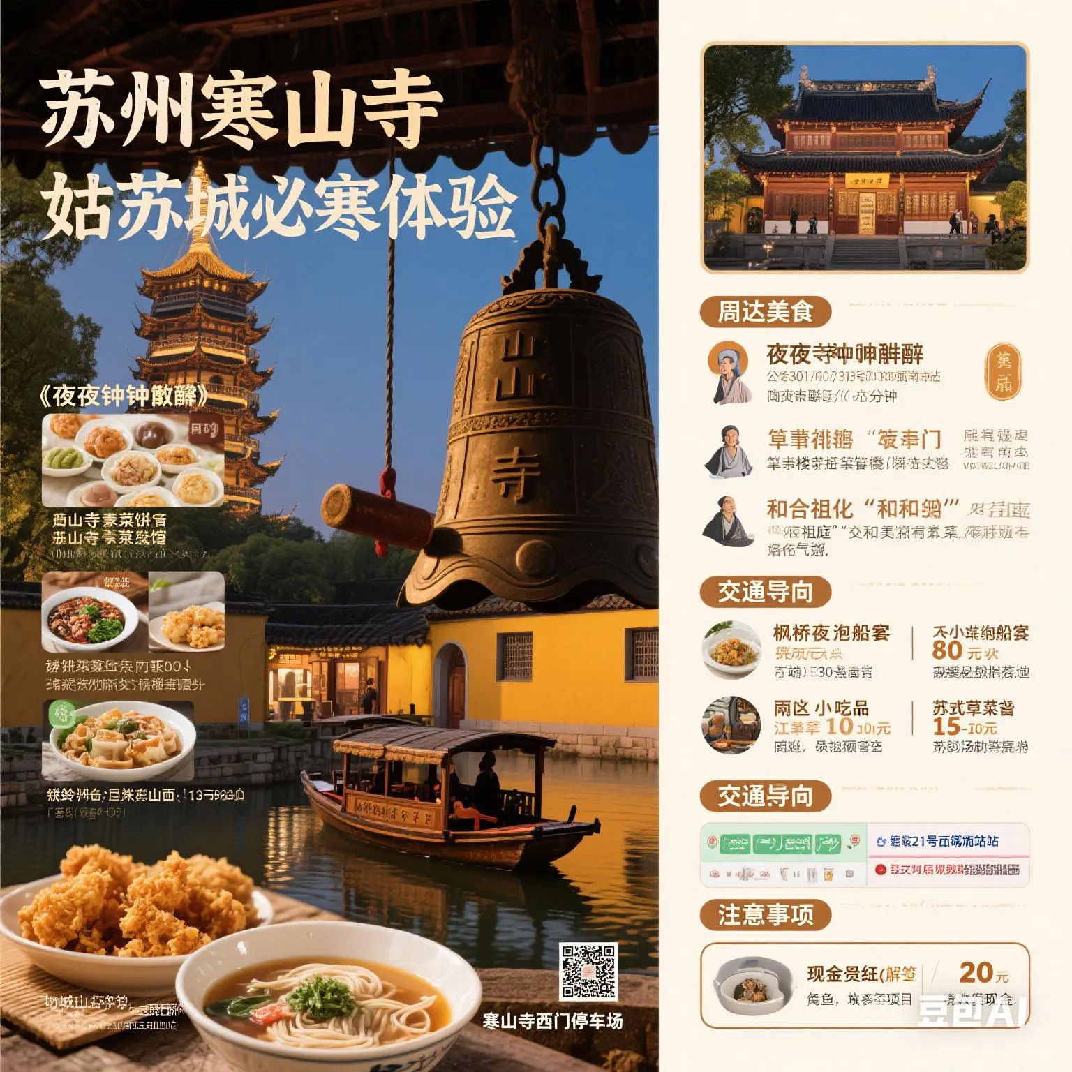 - 虽无法夜访,但可在日间钟楼体验敲钟,感受“姑苏城外寒山寺”的意境。