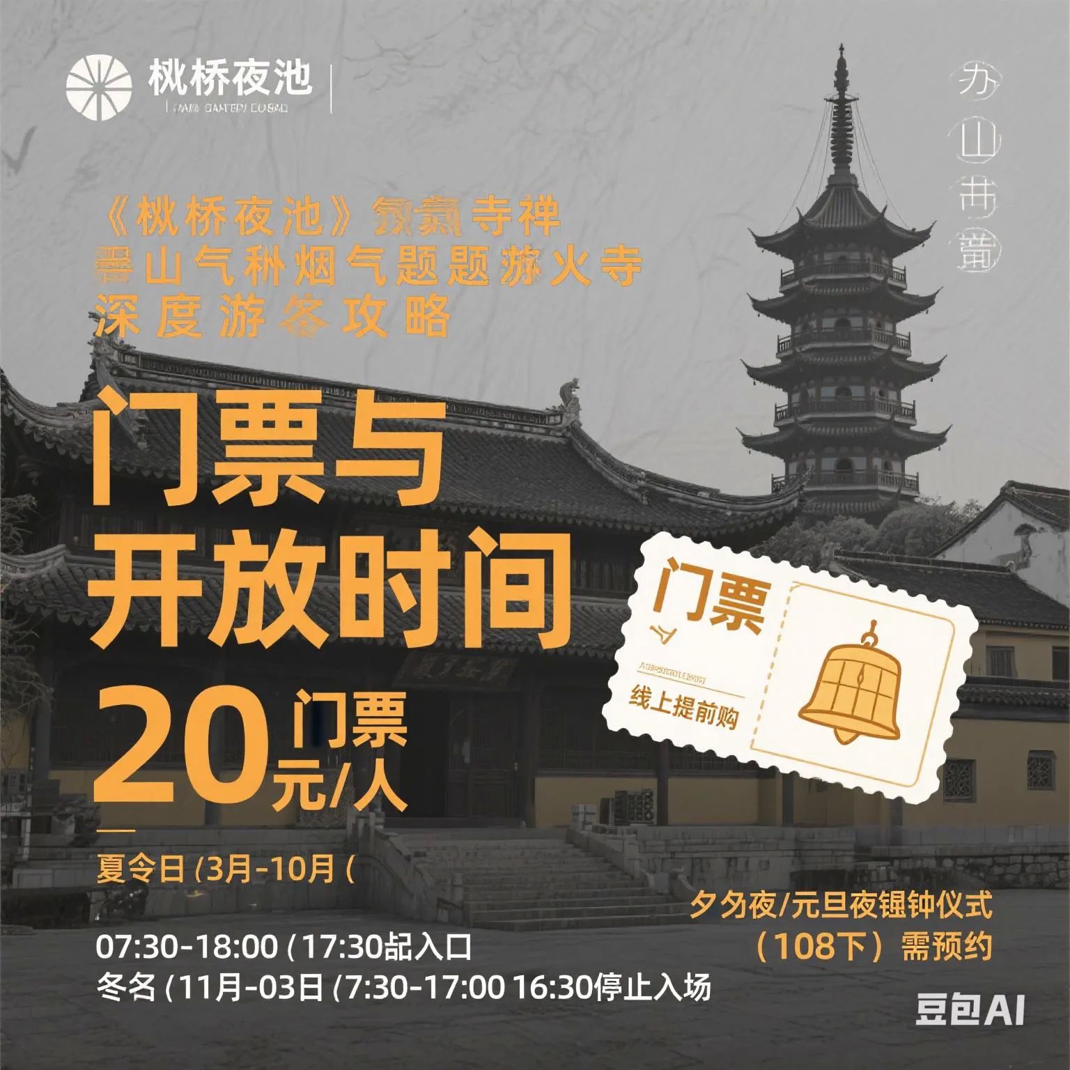 - 自驾:导航“寒山寺西门停车场”(车位有限,建议早到)。