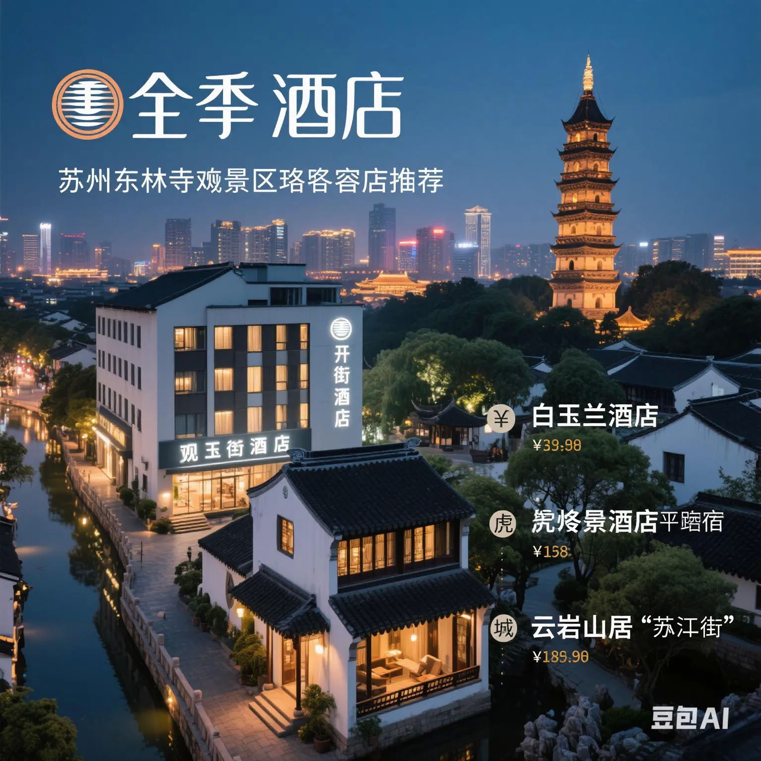 - 全季酒店(观前街店)(400元起):步行至平江路,毗邻地铁,适合夜游。