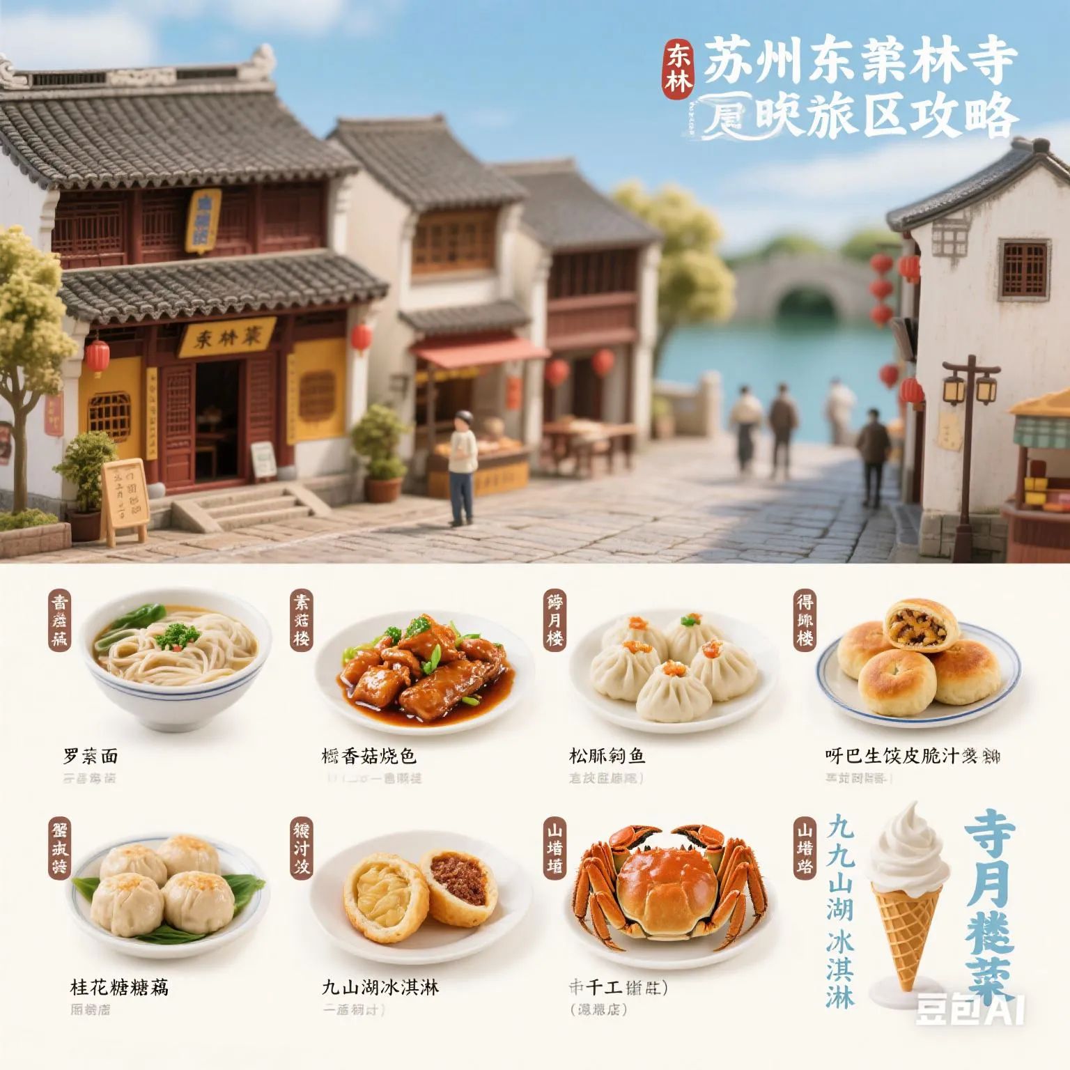 - 下山至山塘街,尝“朱新年汤圆”(芝麻馅软糯)、“桂花糖粥”(甜而不腻),夜游古运河。