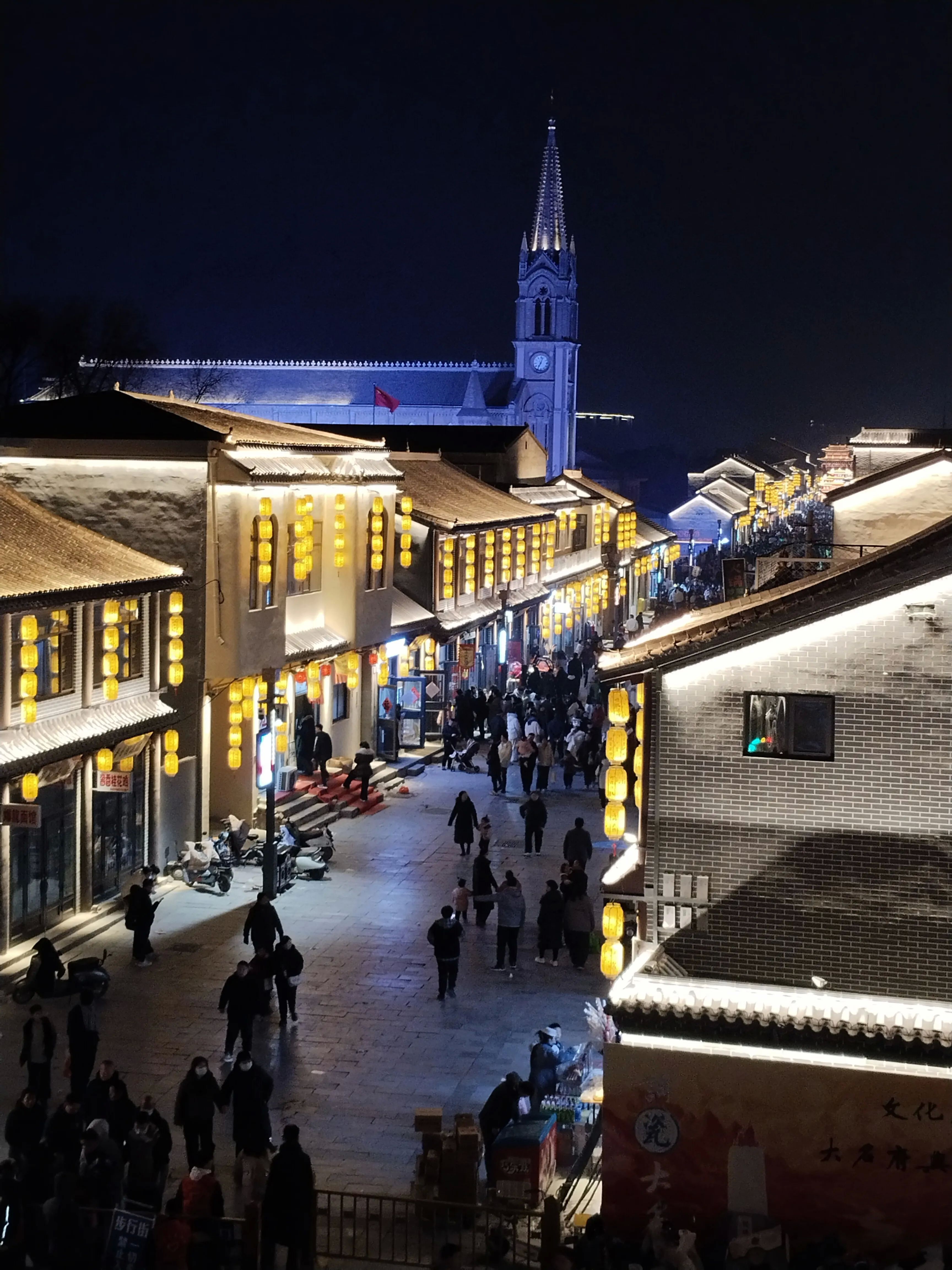 - 大宋风华历史文化街:下午5点左右街灯亮起,景色特别漂亮。街里有大运石刻博物馆和弘敬阁,弘敬阁亮灯时堪比济南超然楼。