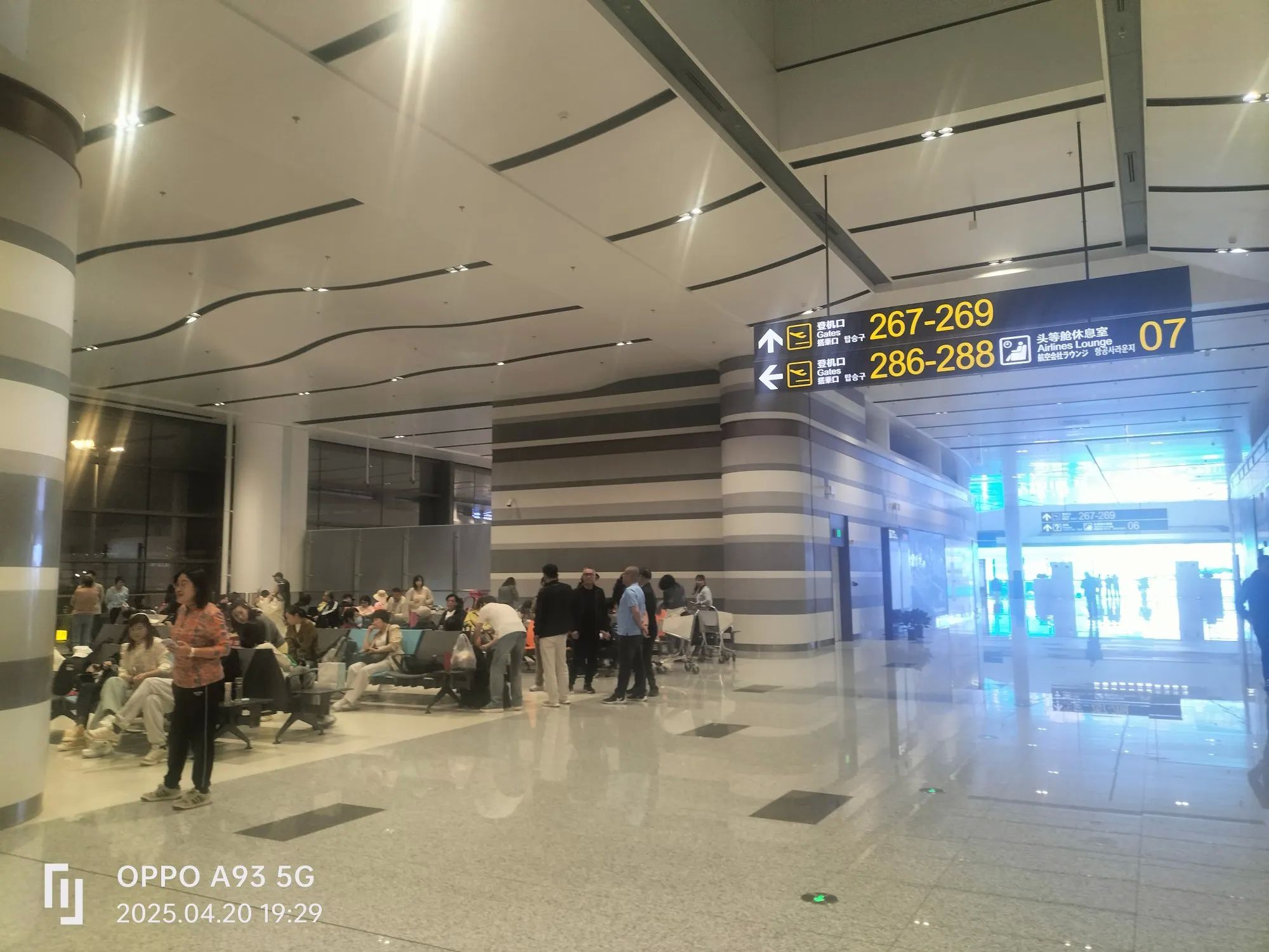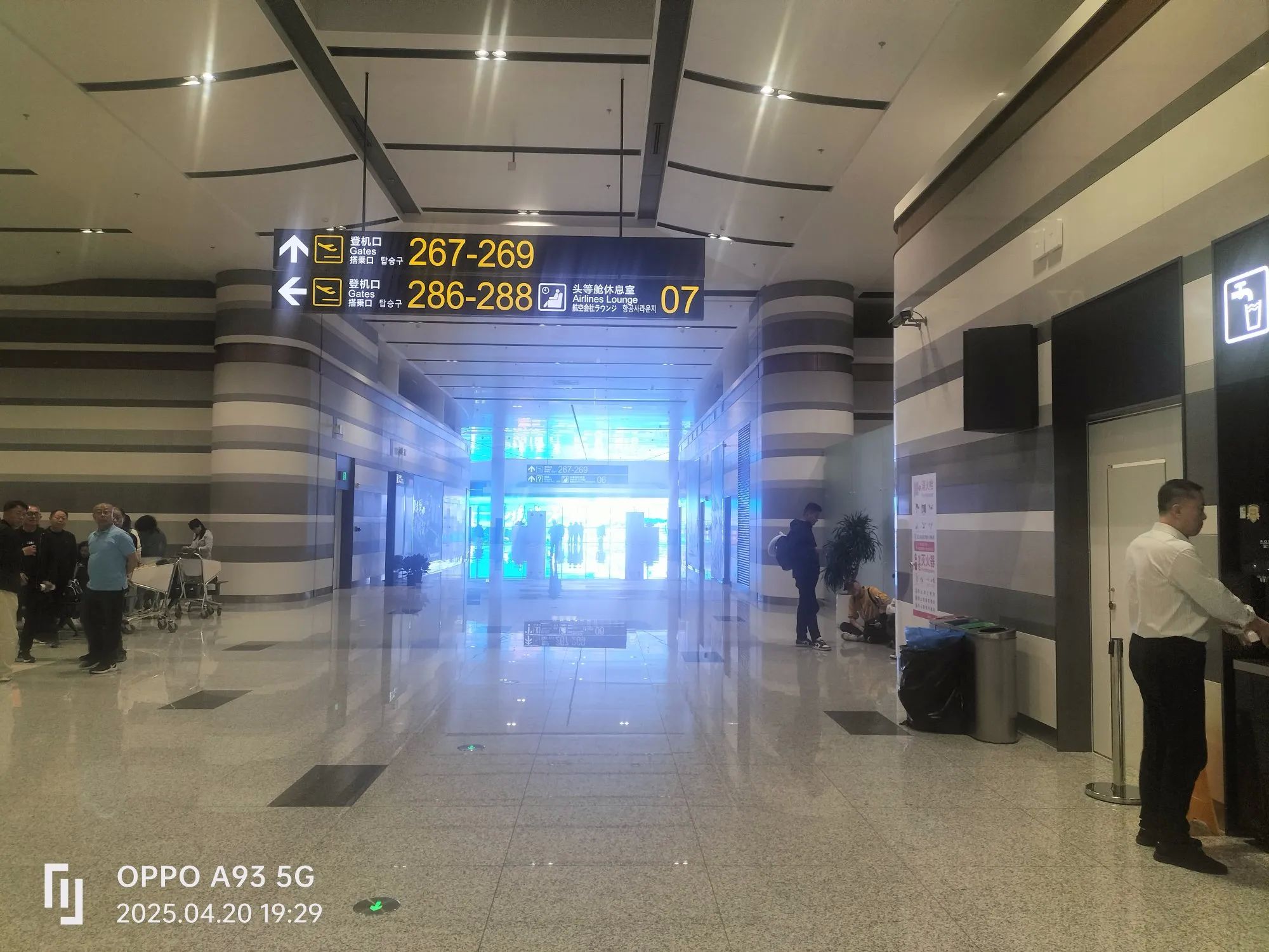 车直达机扬大厅入口,下车我们到大厅,自动取个人机票,办理好行李托运,过安检!登机口266,机票26DE。