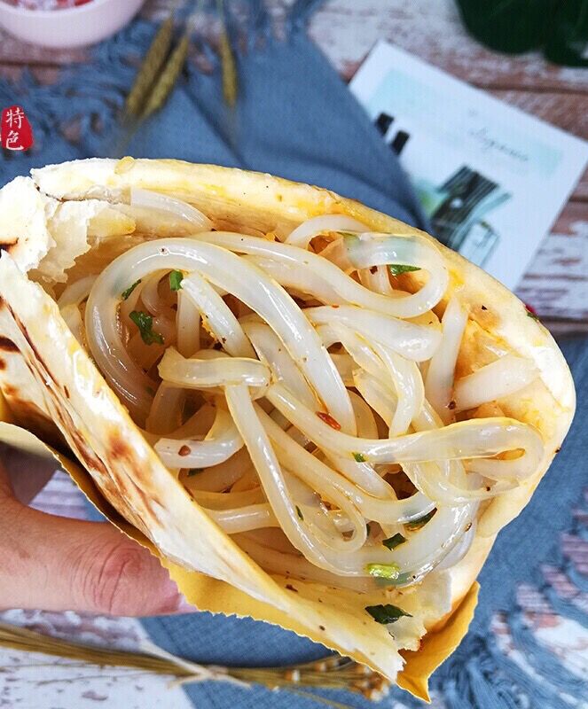 • 锅盔灌凉粉:新鲜出炉的锅盔,外皮酥脆,内瓤绵软。将麻辣爽口的川北凉粉灌入锅盔中,一口咬下去,既有锅盔的香脆,又有凉粉的滑嫩,麻辣鲜香在口中散开,“刚柔相济”的口感让人欲罢不能。