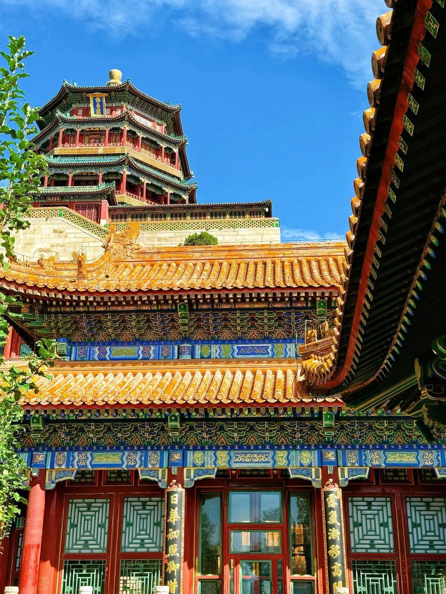5. 颐和园:以昆明湖、万寿山为基址,以杭州西湖为蓝本,汲取江南园林设计手法建成的大型山水园林,一步一景,美不胜收。
