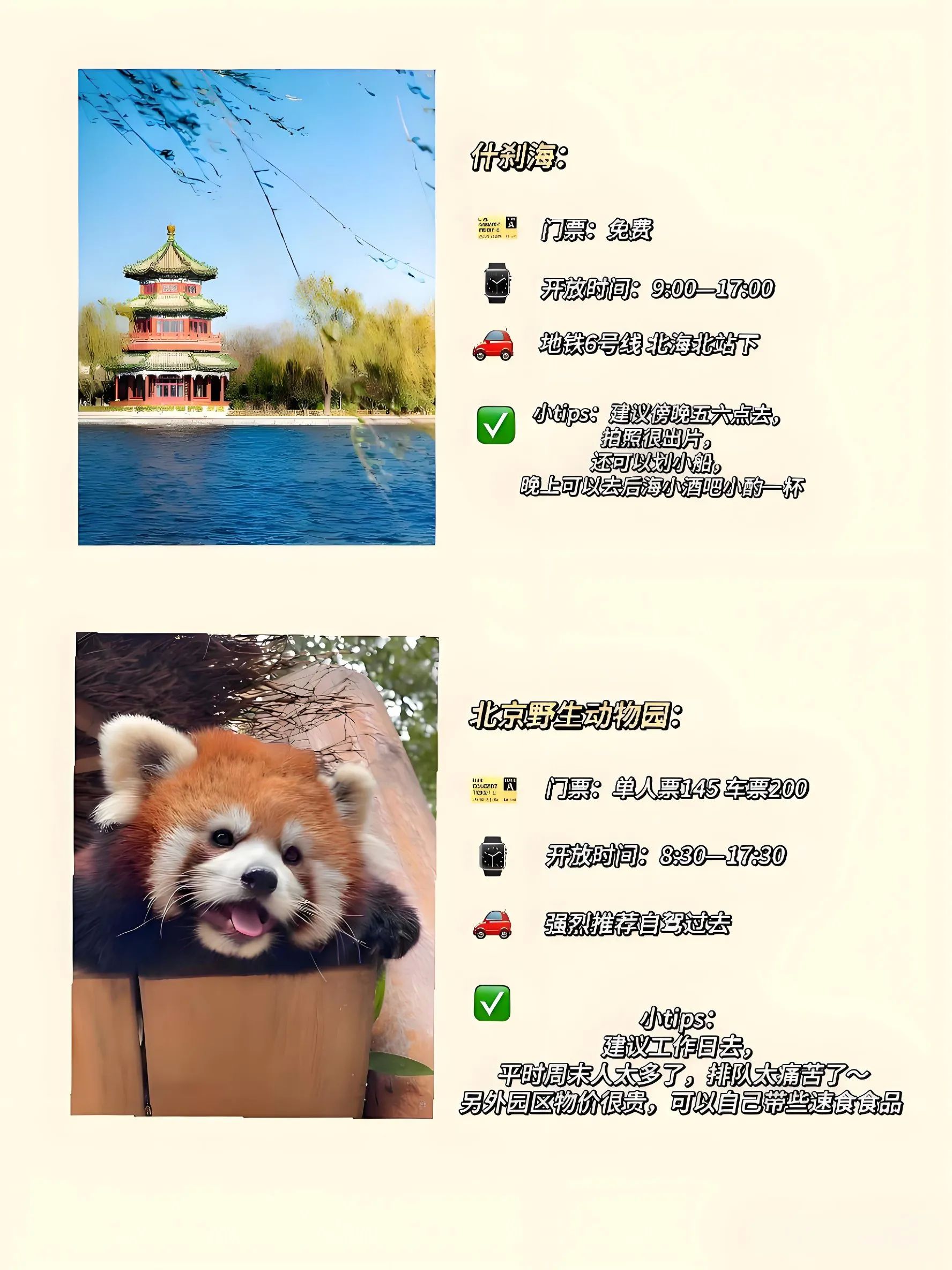 - 美食推荐:北京烤鸭、炸酱面、豆汁儿别错过。
